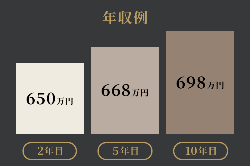 賞与は年に2回支給!金額は業績によって変わりますが、平均で約2ヶ月分を支給しています。また「分娩奨励金」「夜勤手当」「分娩関連手当」などの手当が充実していることもポイント。新しい命と関わる大切な仕事だからこそ、努力やスキルを還元することを惜しみません。 -