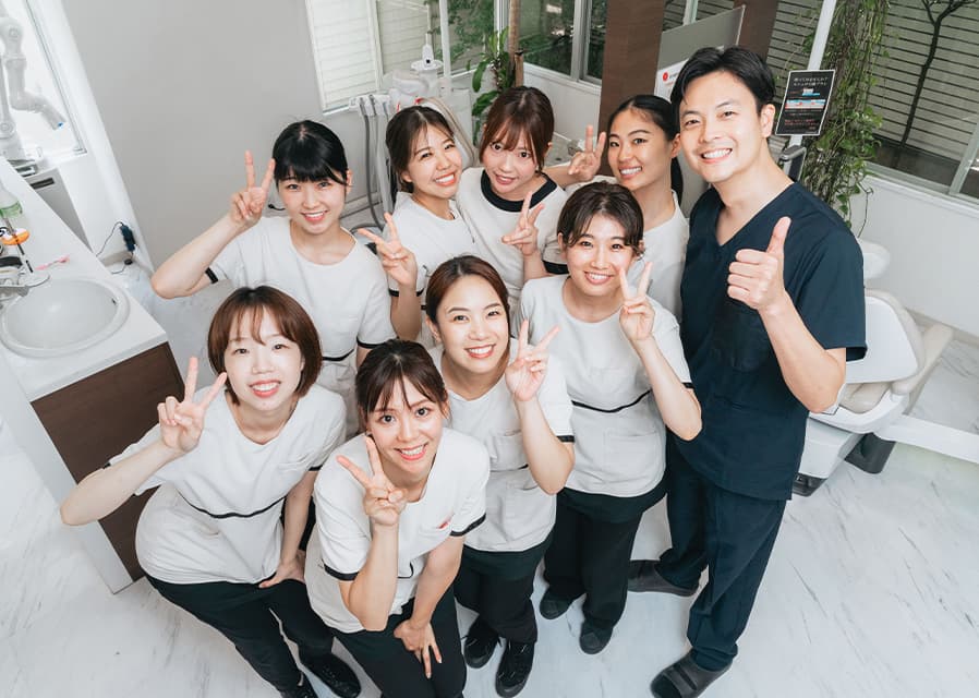 患者様を笑顔にする仕事である以上、まずはスタッフが笑顔でなくてはならない。そんな考えのもとで、当院では「自然と笑顔になれる職場づくり」に取り組んでいます。スタッフ同士は非常に仲が良く、比較的若い年代の衛生士さんが多いです。また、上下関係が厳しいといったこともなく医院に協力的で同じ目的を持って働いているので、常に学ぶ姿勢を持ち、新しいことにも積極的に取り組み、正しい知識を患者さんに提供できる環境です。明るくどんな患者にもポジティブな態度で接することができる、周りが見えていて仲が良く思いやりがあるなど感情のコントロールができるスタッフが自慢の医院です。