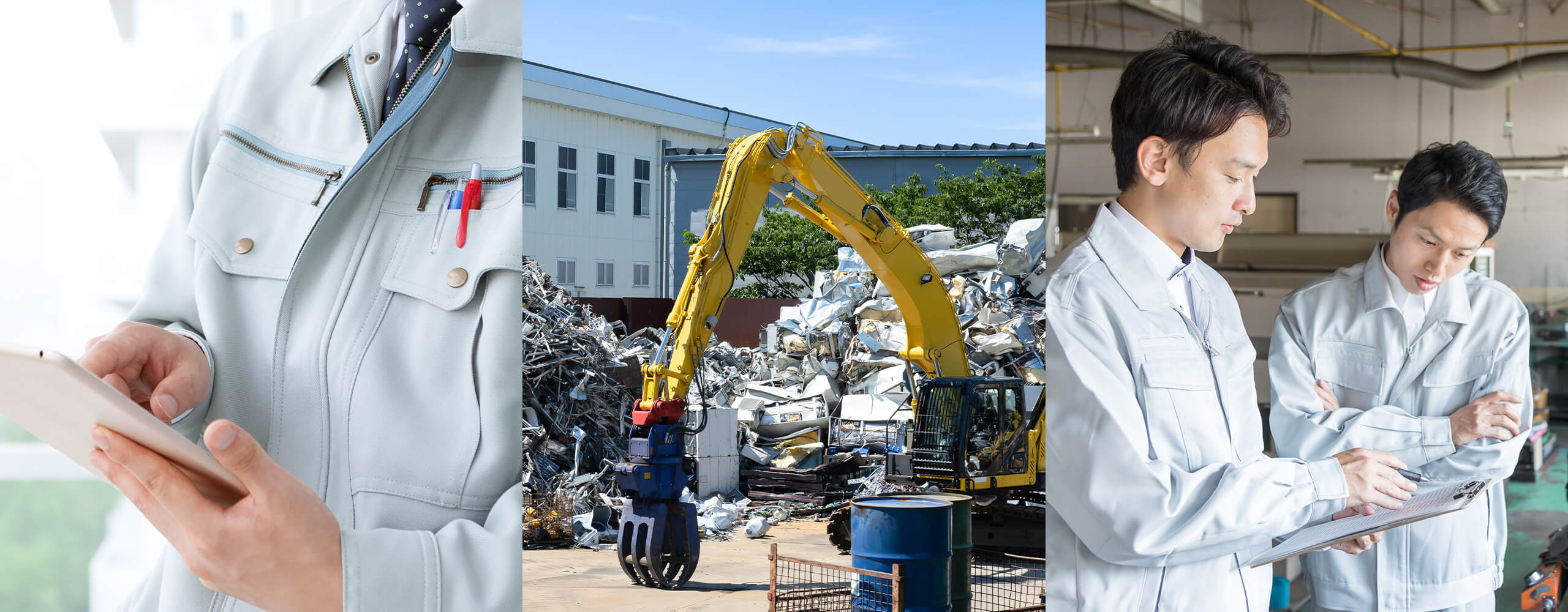 金属やプラスチックなど、さまざまな種類のリサイクル・処理を行います。廃棄物の処理や金属などのスクラップの買取を当社だけで可能にするワンストップ体制を整えており、お客様が各業者を探す手間や、搬送を分ける時間やコストを抑えています。