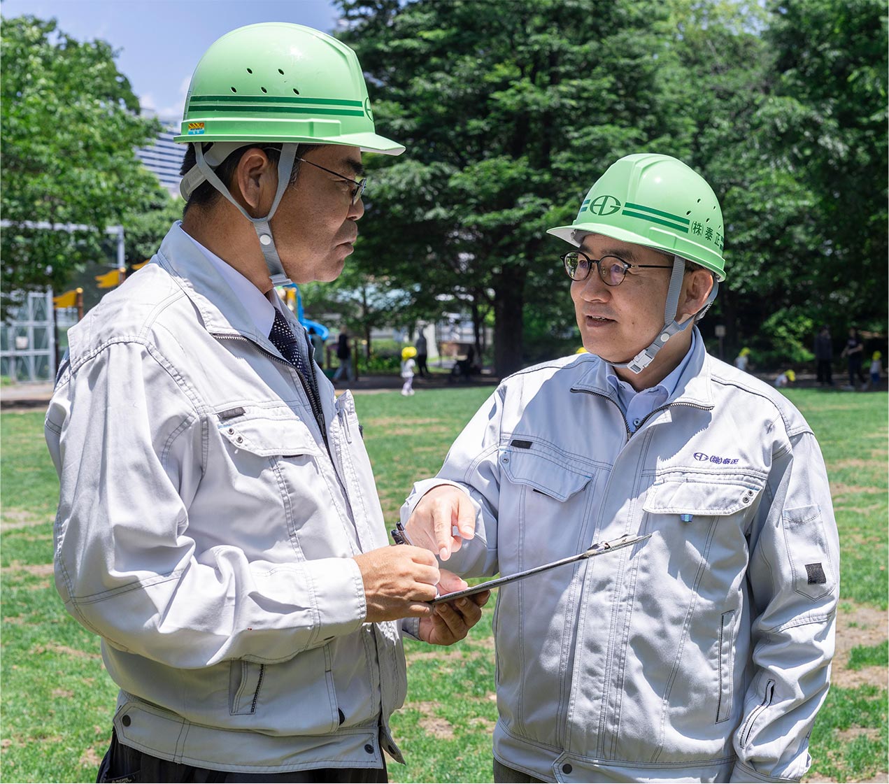 入社後は約1年かけて、先輩と一緒に現場を回ってもらいます。まずは仕事の進め方から着実に学んでいきましょう。また当社では、各現場についてグループチャットで報告&毎月全体会議を実施しています。困ったことやわからないことがあれば、いつでも質問してくださいね。