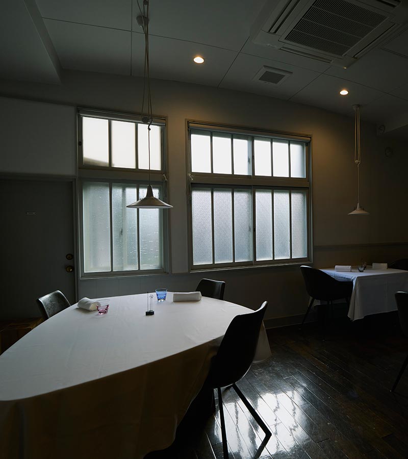 明治期に建てられた店舗は、元洋裁学校だった一軒家を改築したもの。白を基調としたシンプル&モダンな空間で、レトロな雰囲気も味わえます。テーブル数は14席です。