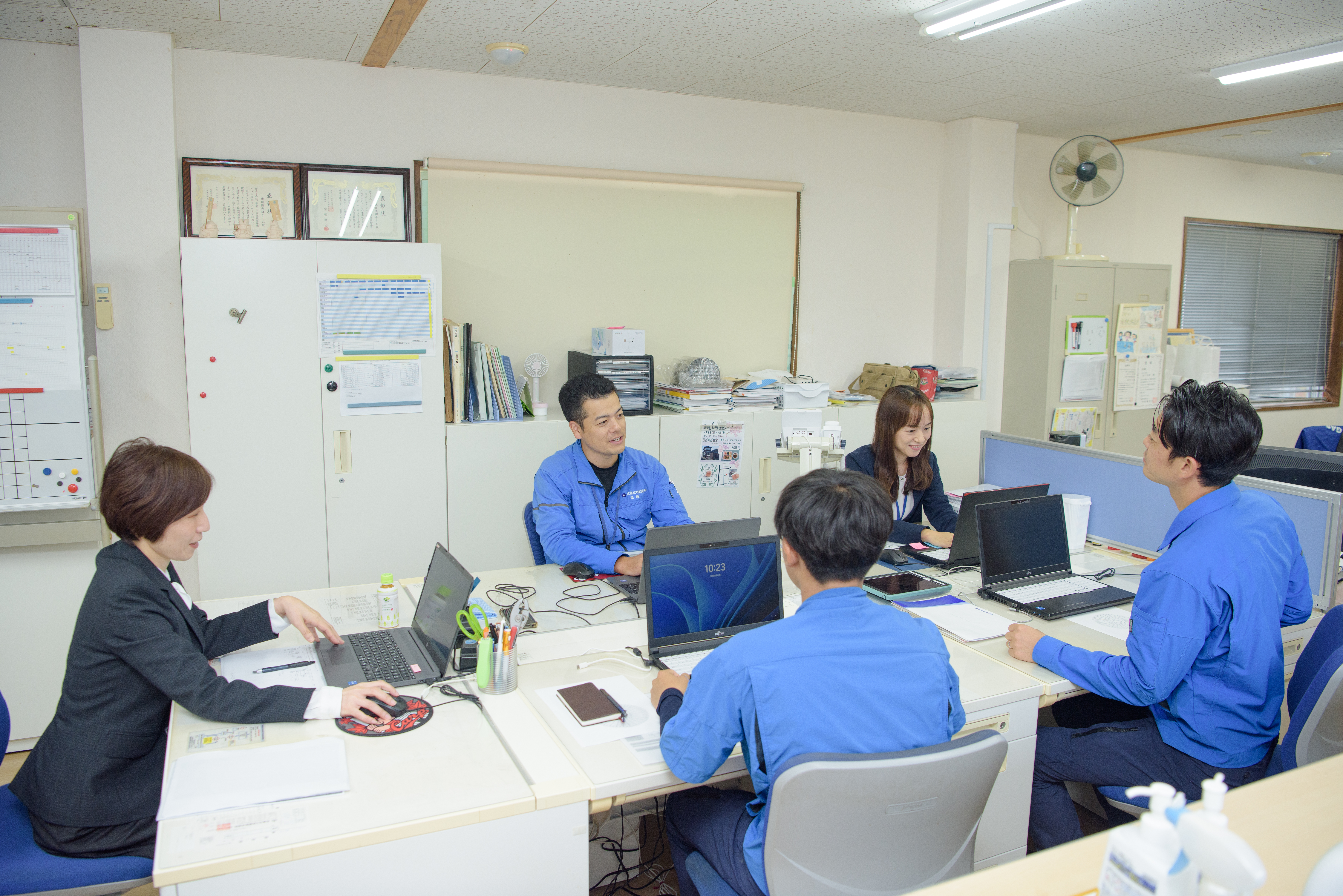 和やかなコミュニケーションが特徴で、落ち着いた雰囲気のなか楽しく働いています。居心地の良さから、勤続年数の長いメンバーも多く在籍中です。仕事以外では、地域を巻き込んだイベントや社員旅行で交流を深めています。