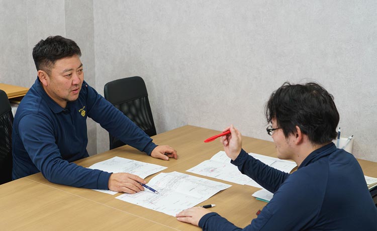 上下水道設備の現地調査や配管設計、付随する事務作業などがメインです。一通り仕事を覚えたあとは、自分で業務量をコントロールできるため、ワークライフバランスを大切にしながら働けますよ。水道設備づくりを通じて、地域の皆様の安心・安全な暮らしに貢献できる、やりがいのある仕事です。