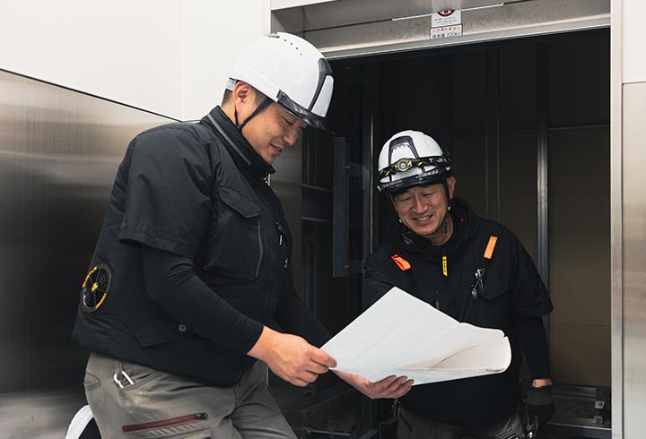 普段は点検が中心ですが、夏休みや冬休みなどの学校の長期休業期間中は数名のチームで昇降機の撤去・新設工事を実施。