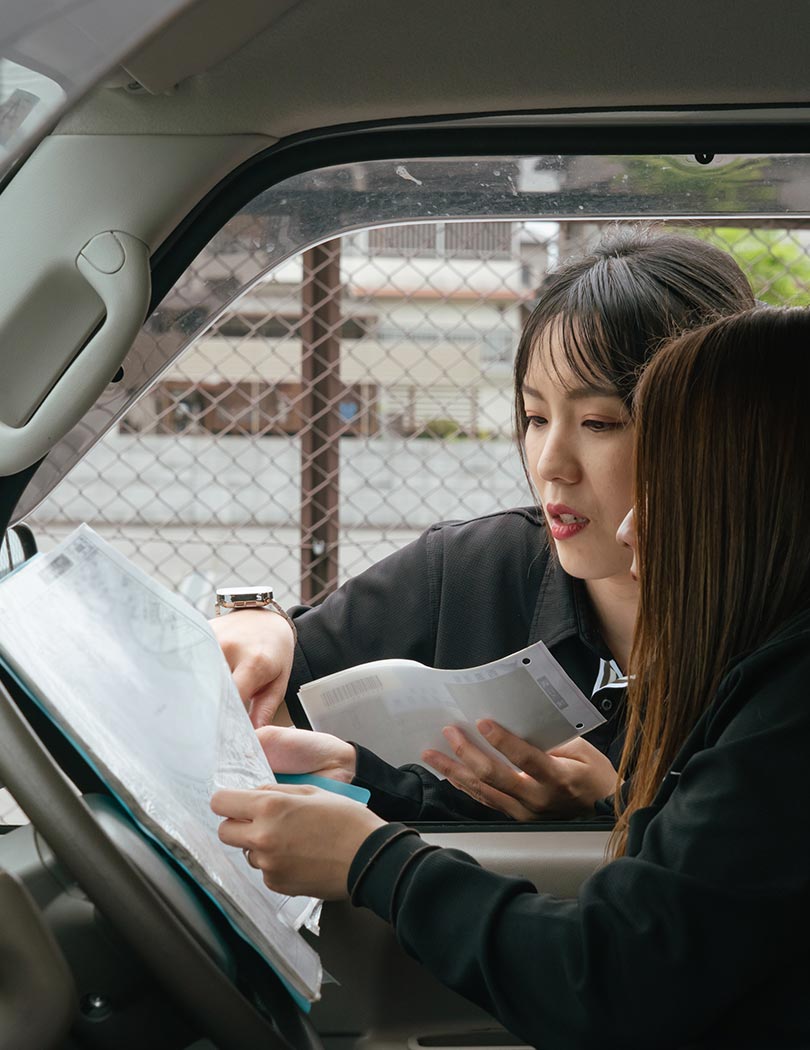 応募に必要なのは運転免許のみ!未経験で入社したスタッフも、現在は中心メンバーとして活躍しています。横乗り研修をはじめ、わからないことはなんでも気軽に相談できる雰囲気です。
