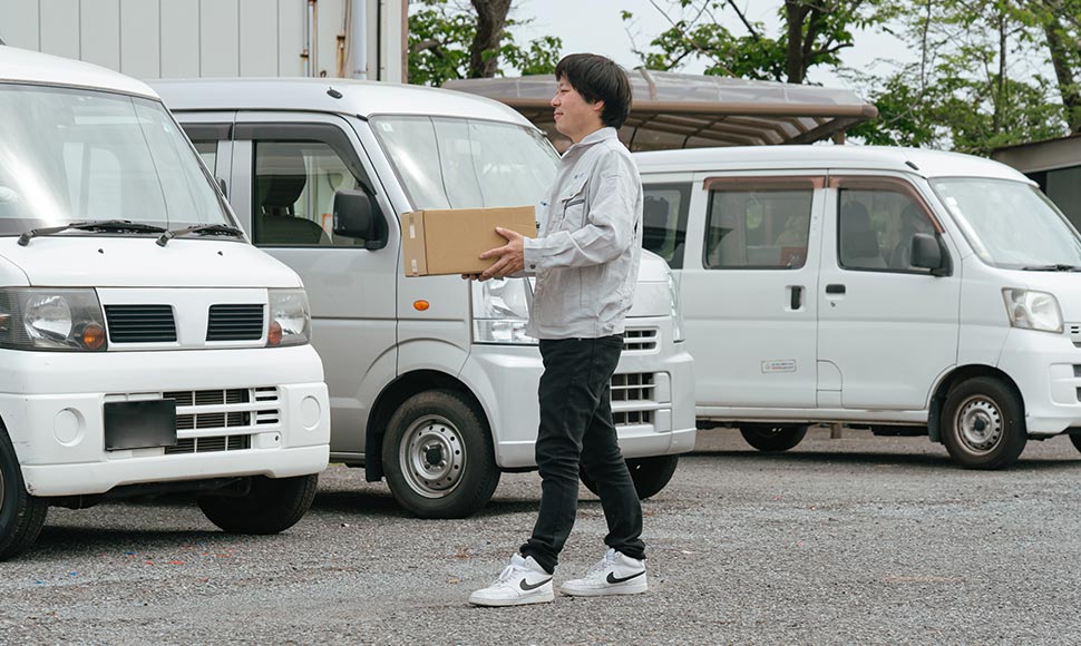 企業間で取引されている品物を輸送するのがメインです。エリアは加古川市を中心に、姫路市や加古郡などの近隣地区にも対応しています。配達件数は1日に70件ほどで、単価は荷物1つにつき200円です。