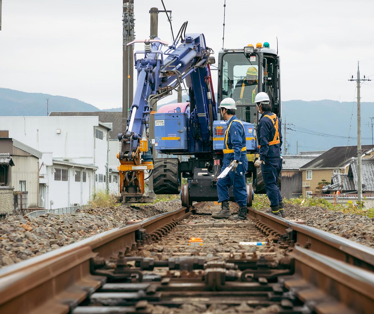 私たちが手掛けているのは、主に滋賀県下のJR東海道線野洲駅から南草津駅間、JR草津線全線の軌道工事や阪急沿線の軌道工事。滋賀県下だけでなく、日本のさまざまな地域で軌道工事や保線を承るために、企業努力を欠かさずに続けてきました。軌道保線のスペシャリストとして、交通インフラを守るプロフェッショナルとして。鉄道工事を通じて地域の発展に貢献し、人々の暮らしと産業界の未来を支え続けています。
