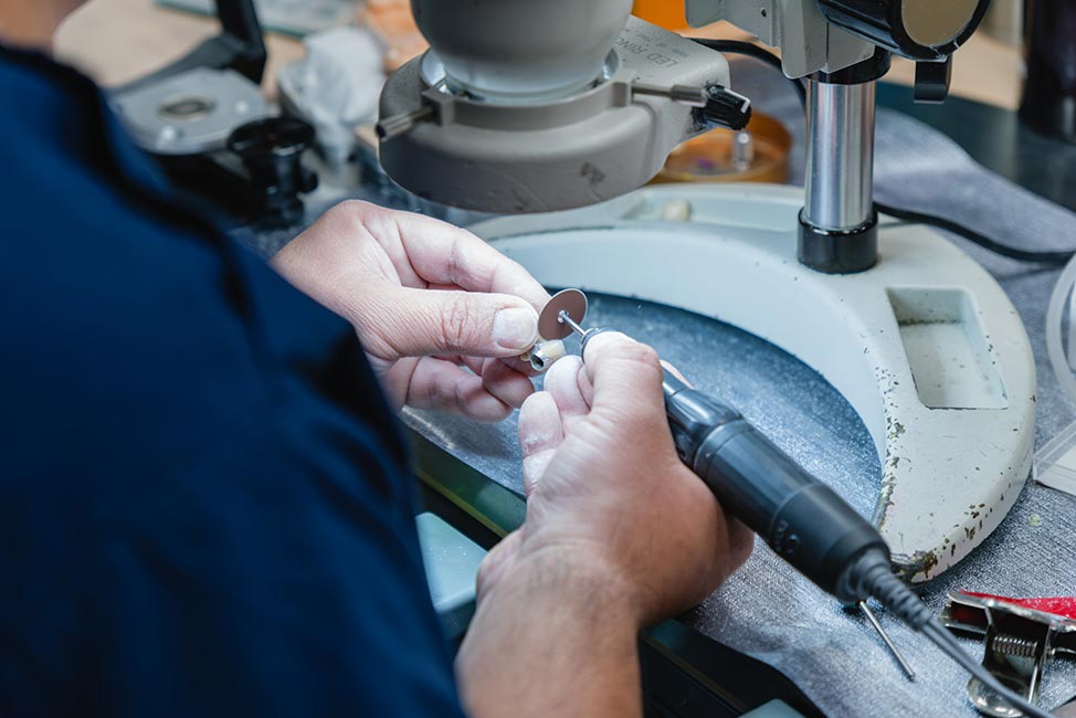 歯科医院で使われる補綴物の製作(仕上げ)を担当していただきます。不自然な仕上がりになると、ほかの歯と調和が取れずに浮いてしまうため、繊細さが求められる作業。セラミストを目指す方にとっては、特に良い勉強になること間違いナシです。未経験でも、イチから学べる環境を整えました。先輩技工士の匠の技を盗むつもりで覚えていきましょう。