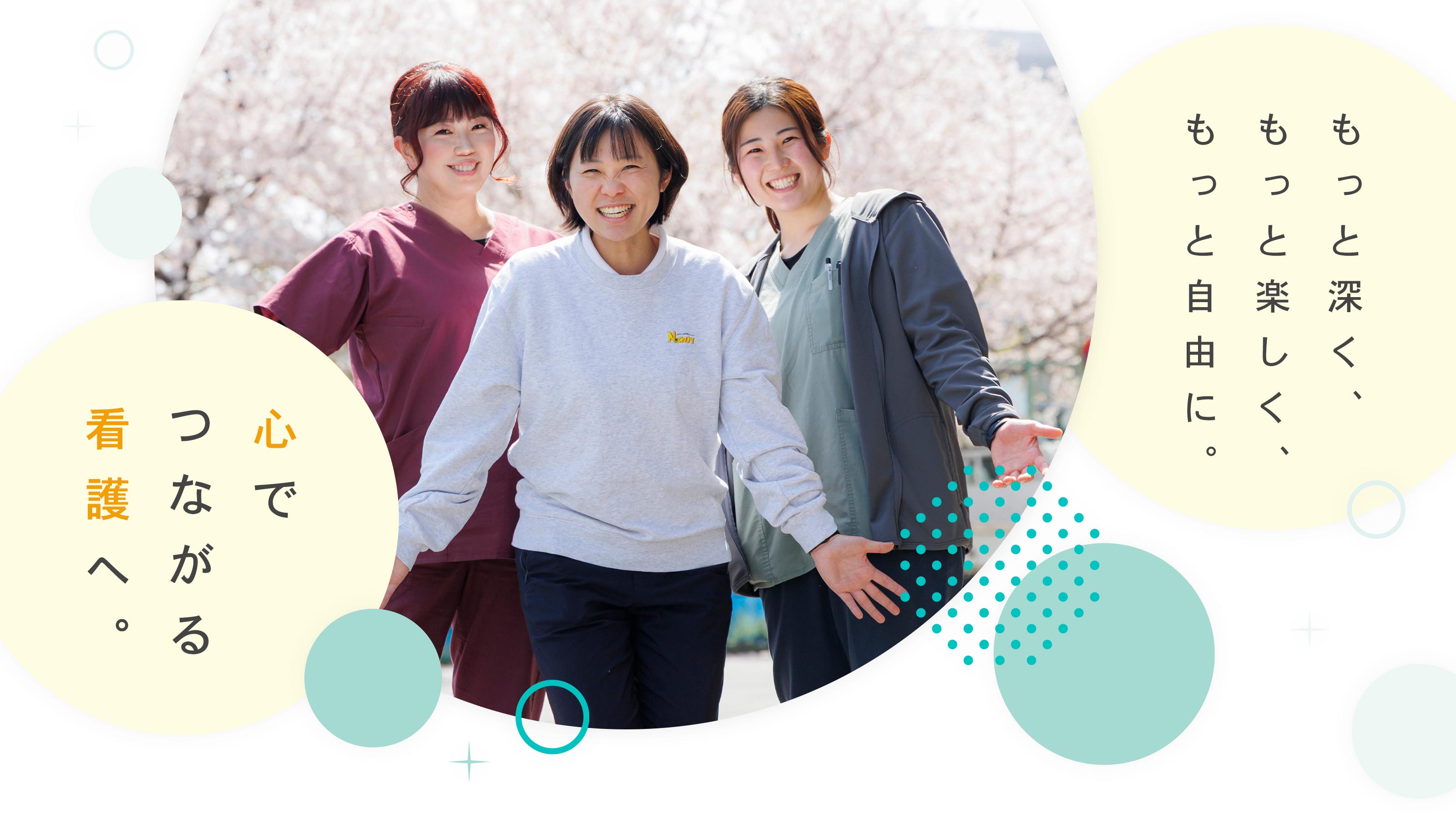 ご利用者様の体調を確認し、その日の状態に合わせた必要なケアを実施します。具体的には、バイタルサインや健康状態の観察、日常生活に支援、内服管理など。必要に応じて入浴介助や医療機器管理・医療処置などを行います。ご利用者様一人ひとりに寄り添いながら、安心して生活を送れるようサポートするのが、私たちの役目です。