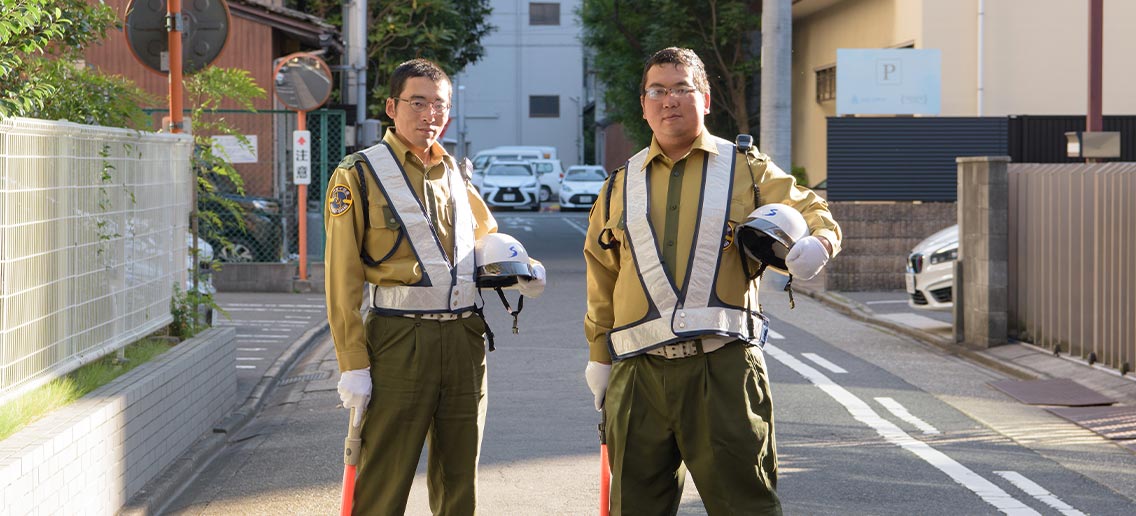 私たちは、名古屋エリアを中心に30年以上にわたり警備を提供しています。イベント会場等での雑踏警備、道路工事や駐車場内の交通誘導、そして施設での常駐警備が主な業務です。