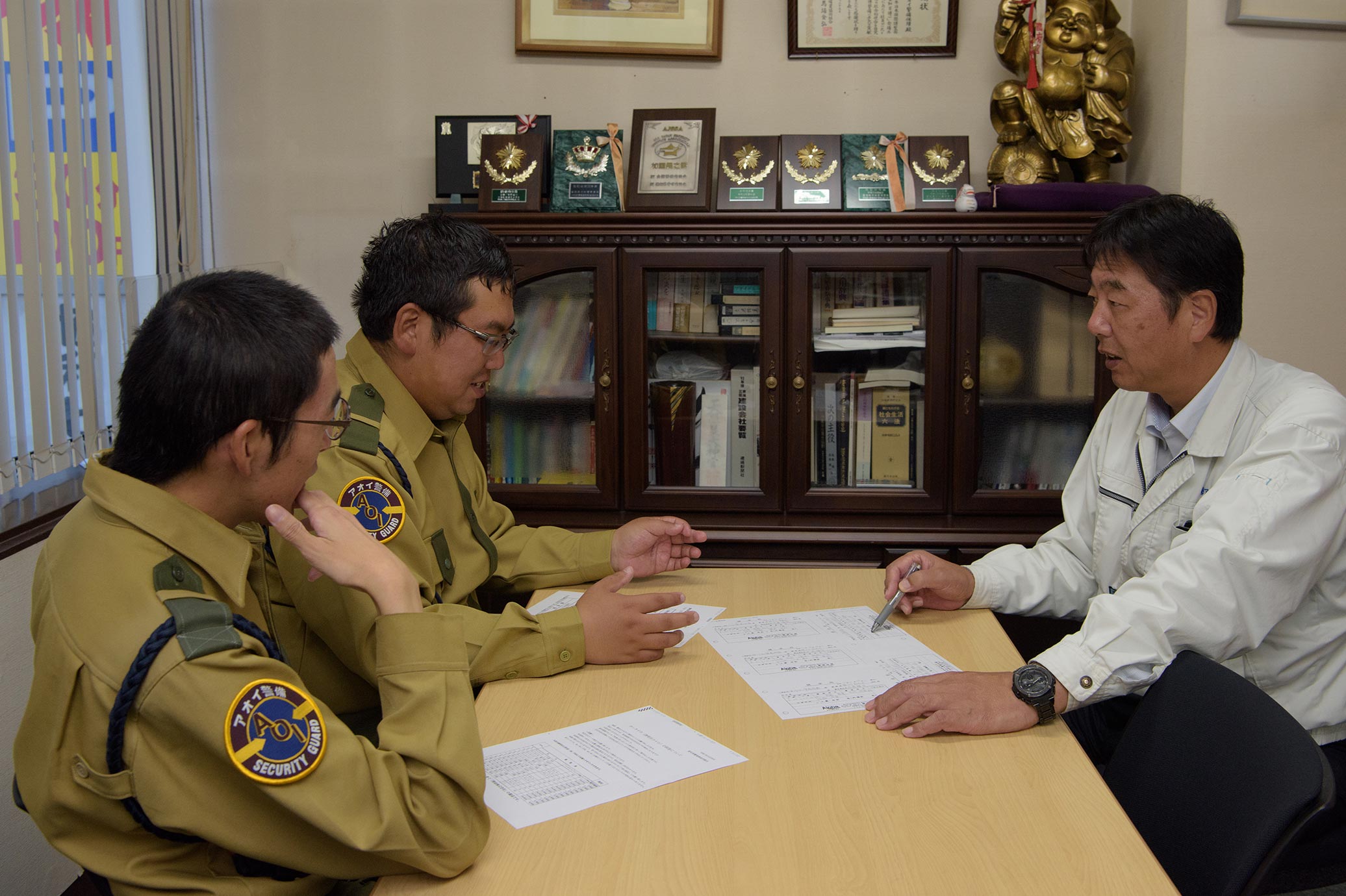 入社後は、事務所で警備業務の基本ルールを学んでいただきます。その後は先輩社員と現場に同行し、仕事の流れを把握していきましょう。若手社員も多く、わからないことがあっても質問や相談がしやすい雰囲気です。最初は誰もが緊張するもの。ぜひ、安心して周りの社員を頼ってください。