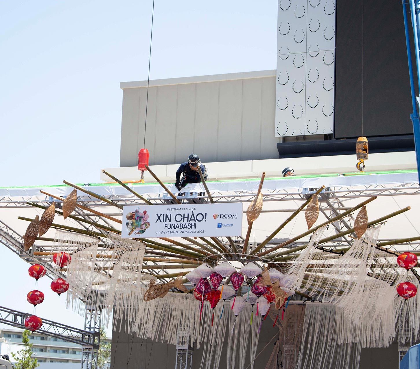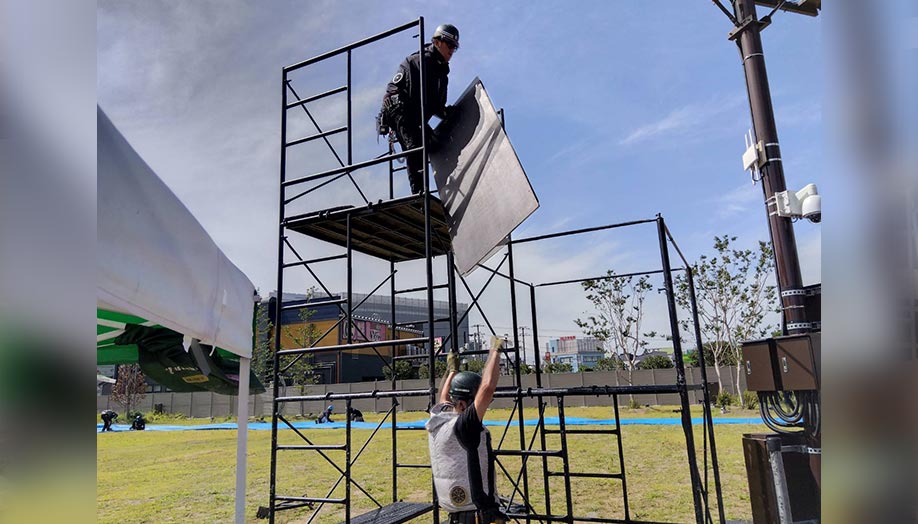 声をかけ合い、安全を確認しながら一つの構造物を組み上げていく──