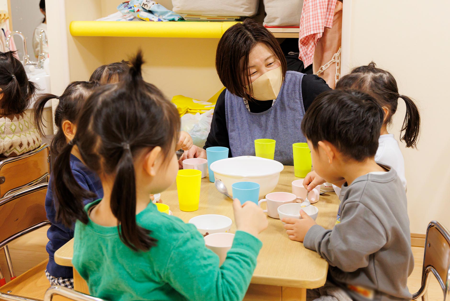 保育士資格をお持ちの方にはクラス担任としての業務、サポーターの方には保育補助業務をお任せします。対象は「0~2歳児」または「3~5歳児」の子どもたちです。