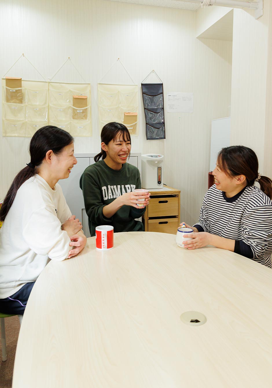 当園では、20代から70代まで幅広い年代の職員が在籍中。少人数の職場なので距離感が近く、気軽にコミュニケーションを取れる風通しのいい雰囲気が魅力です。経験豊富なメンバーばかりなので、悩みや困りごとがあればすぐにご相談ください。居心地のよさはもちろん、情報共有や意見共有も活発なので、普段の業務もスムーズに進めることができます。
