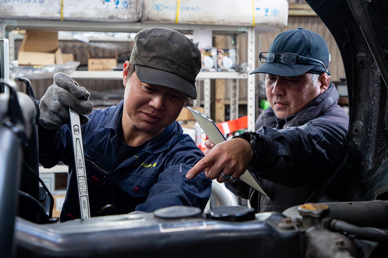 【山方車輌】は鹿児島全域にわたり、大型車両・重機の整備事業を展開する会社です。