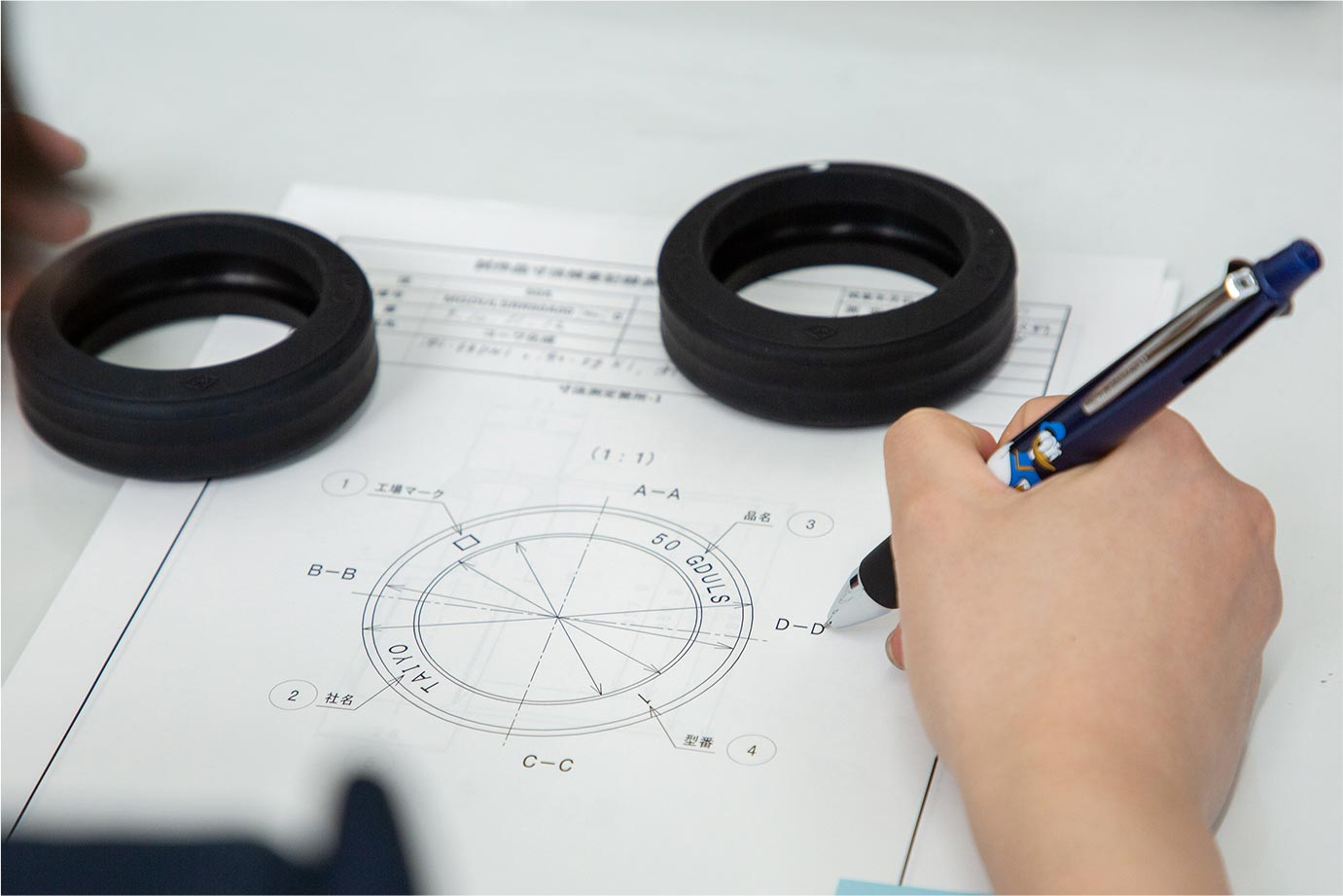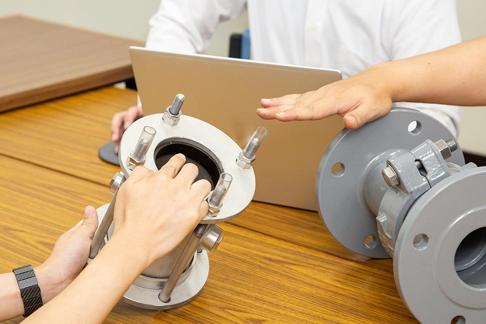 CADを使った継手の設計・製図から、製品評価試験、ノギスを使った精密な寸法測定まで、幅広く担当していただきます。また、報告書などの書類作成も行うため、マルチに活躍できる人材として成長できるでしょう。製品の精度を左右する、やりがいを感じる仕事です。