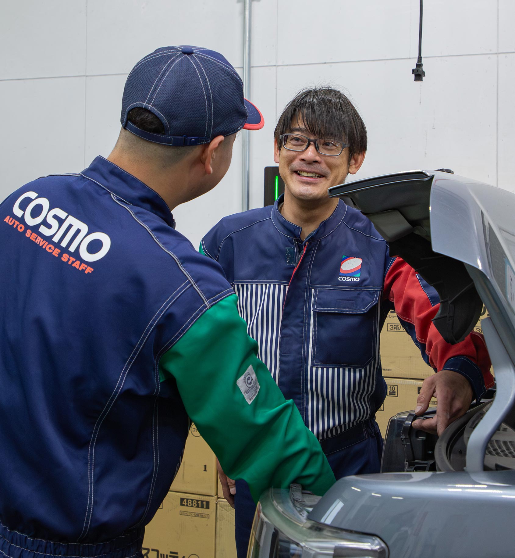 どちらもメインで、大切な仕事です。当社のスタッフは、給油サポートやお客様へのご案内などの接客を行いながら、点検や軽整備などの作業にも携わっています。接客が得意な人も、整備が好きな人も、それぞれの強みを活かせるのがこの仕事の魅力。まずは簡単なご案内やチェックから始め、少しずつ整備技術を身につけていきましょう!