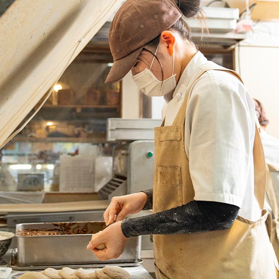 初めはクロワッサンの折込み、成型や包あん、商品の仕上げ、翌日の準備などを担当します。パン作りの基本を学びながら、作業の流れを理解していきましょう。仕込み、成形、焼成といったほかの作業にも徐々に関わり、技術を身につけていきます。すべての作業は先輩スタッフのサポートを受けながら行うので、未経験者でも安心して取り組める環境です。日々の繰り返しで経験を積みながら、自分のペースで成長できるため、長期的なスキルアップも可能。商品企画やSNS投稿にも意欲があれば携わることができ、自分のアイデアを形にするチャンスもあります。