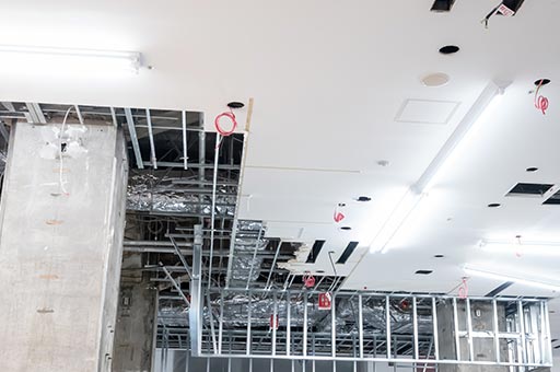 高層複合施設で快適性と省エネ性能を両立するため、厳しい基準に沿った断熱・防露対策を実施。多くのテナントが入居する施設での複雑な工程にも対応しました。