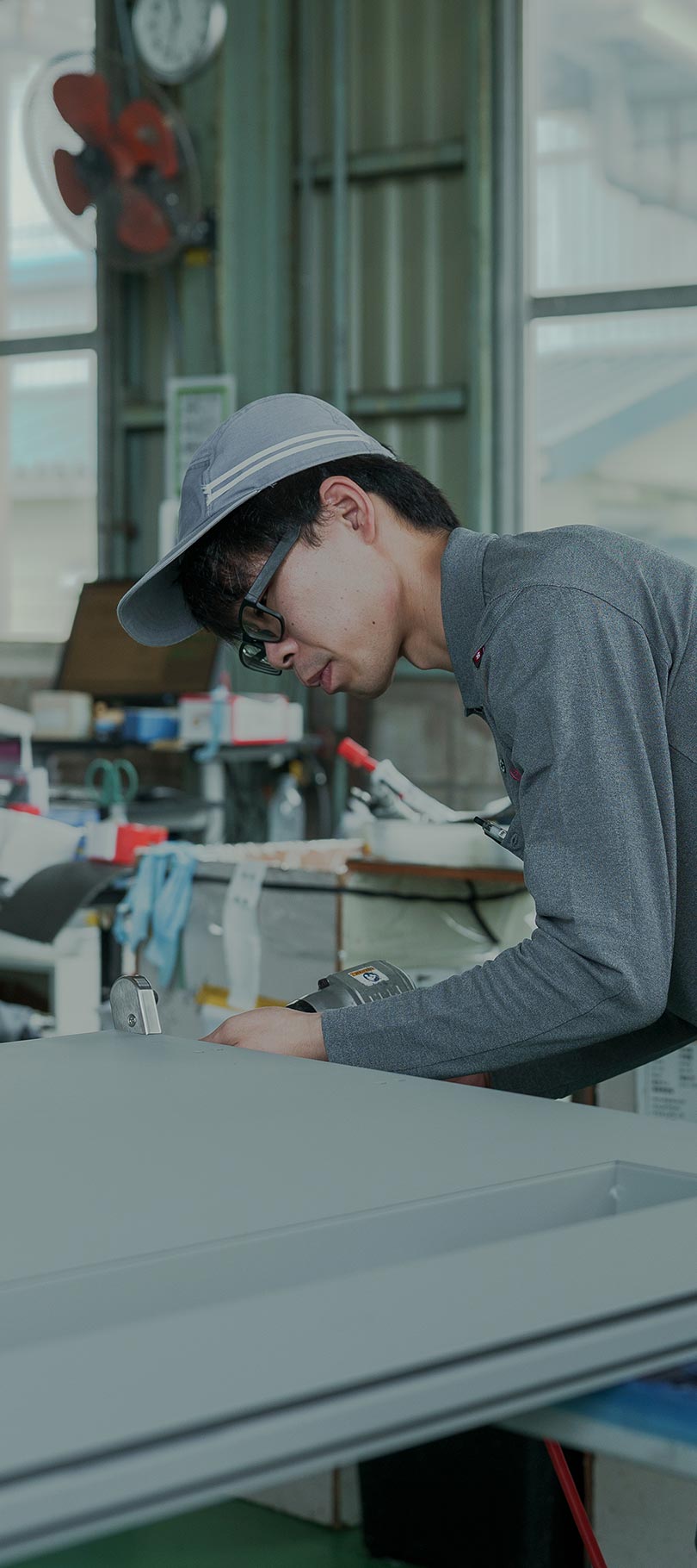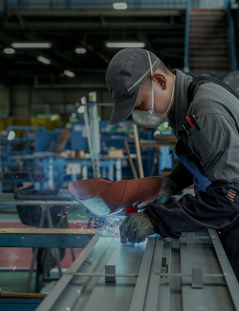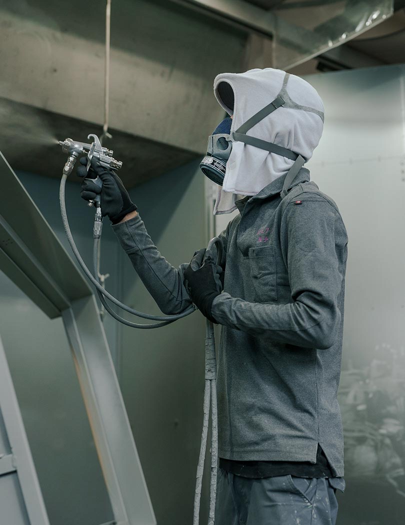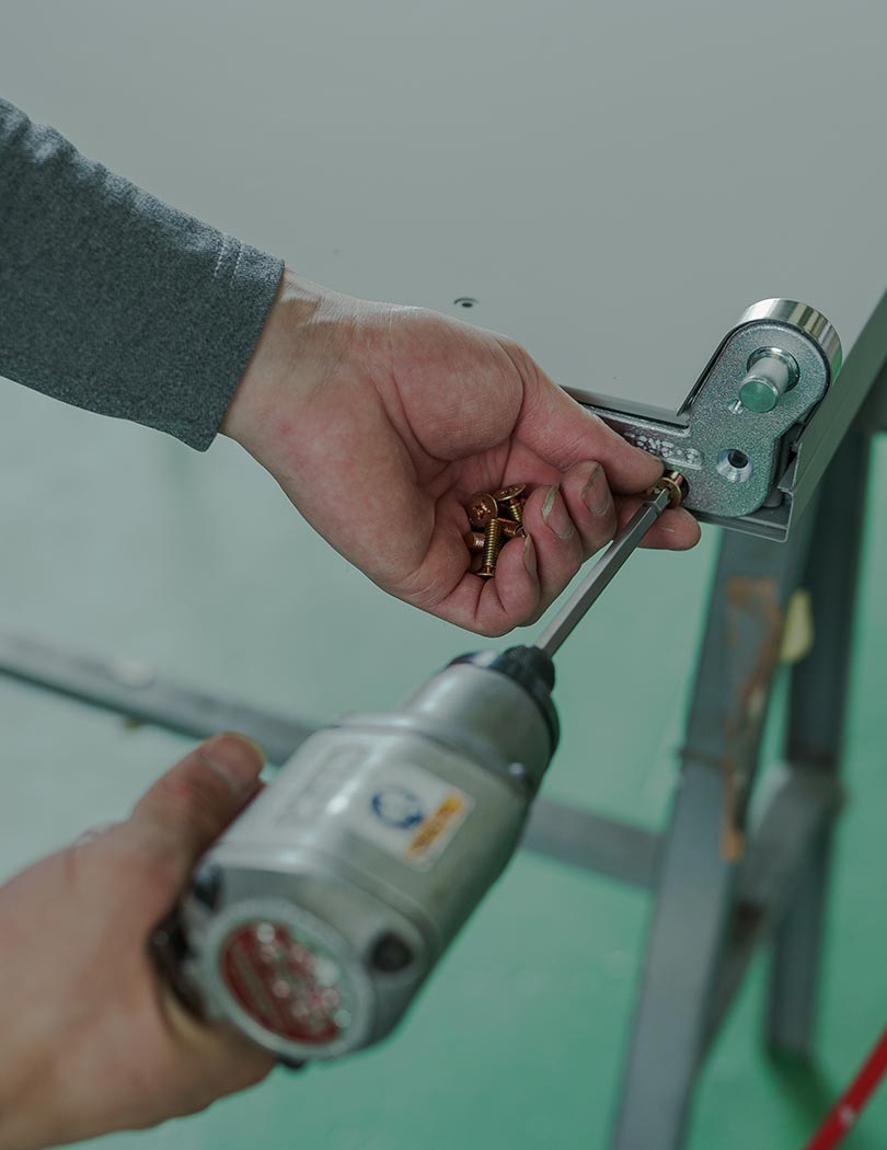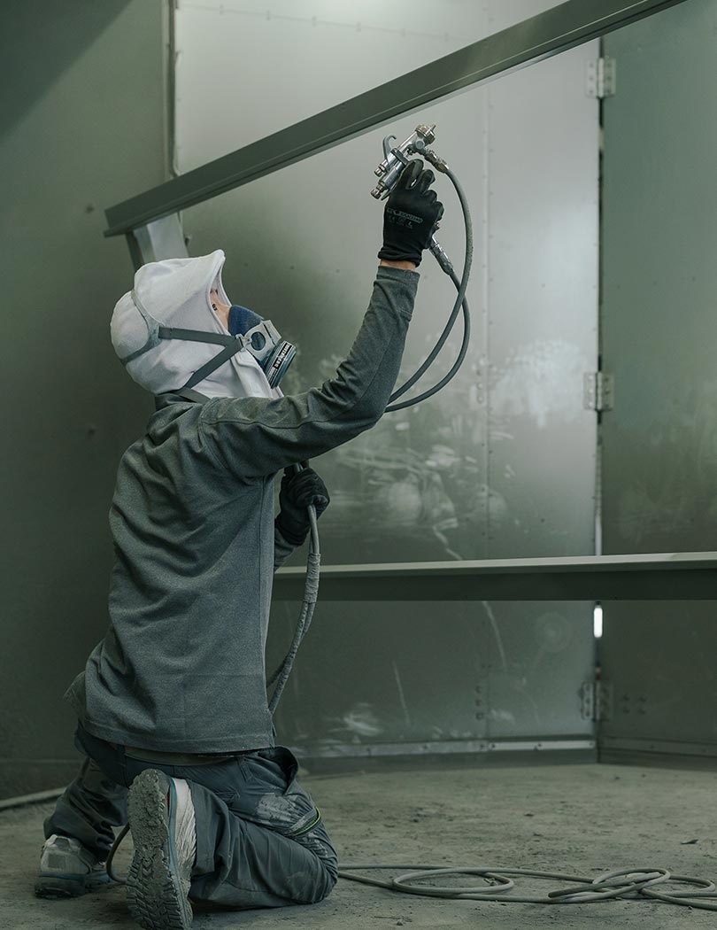 私たちは、扉枠の製造を専門とする会社です。図面作成や組み立て、加工、切断、溶接、塗装、メンテナンスなど、幅広い工程に関わっています。