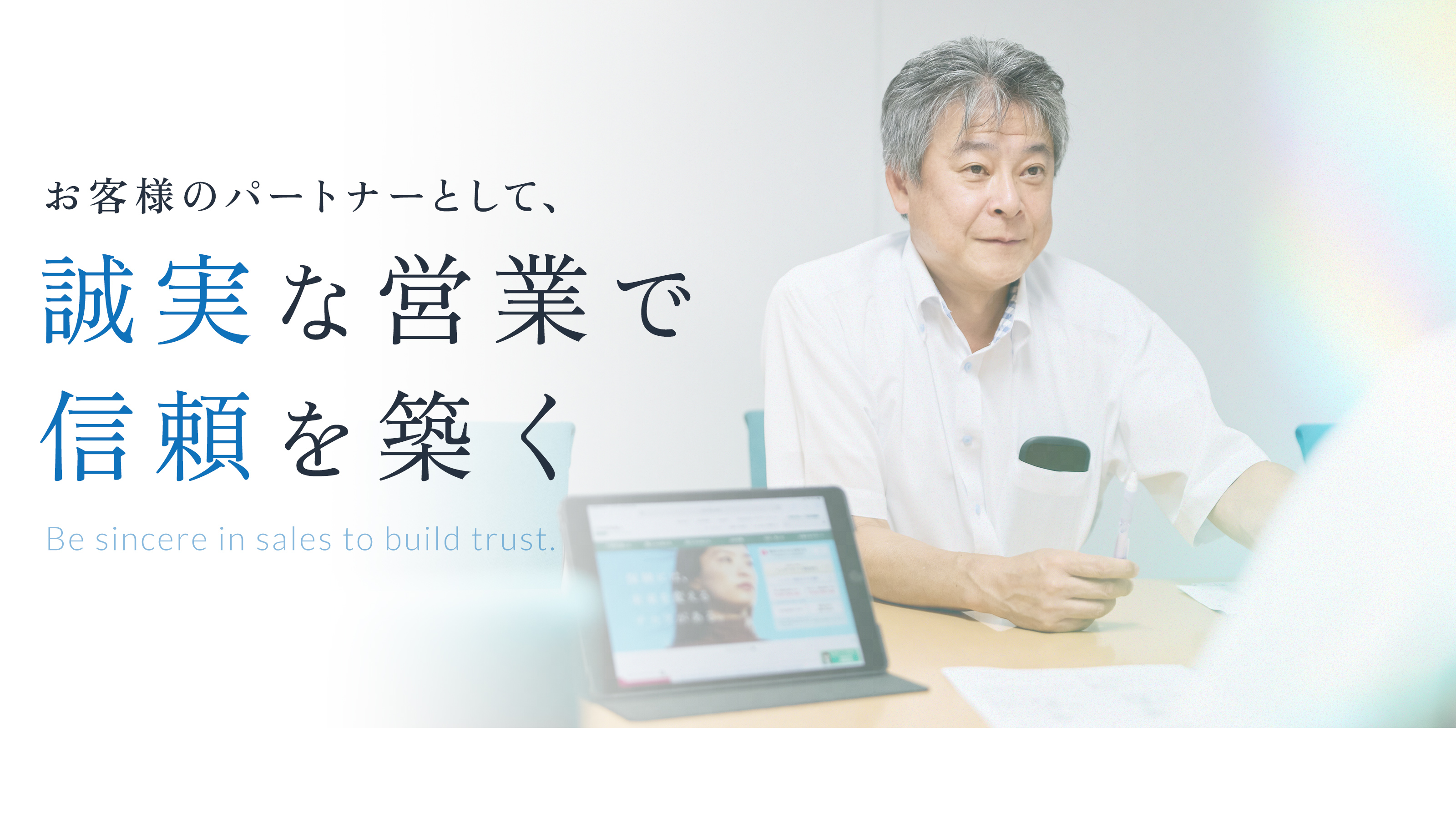 営業と事務がチームで連携し、万全のサポート体制を構築。数字ではなく"人として信頼される営業"を目指しています。