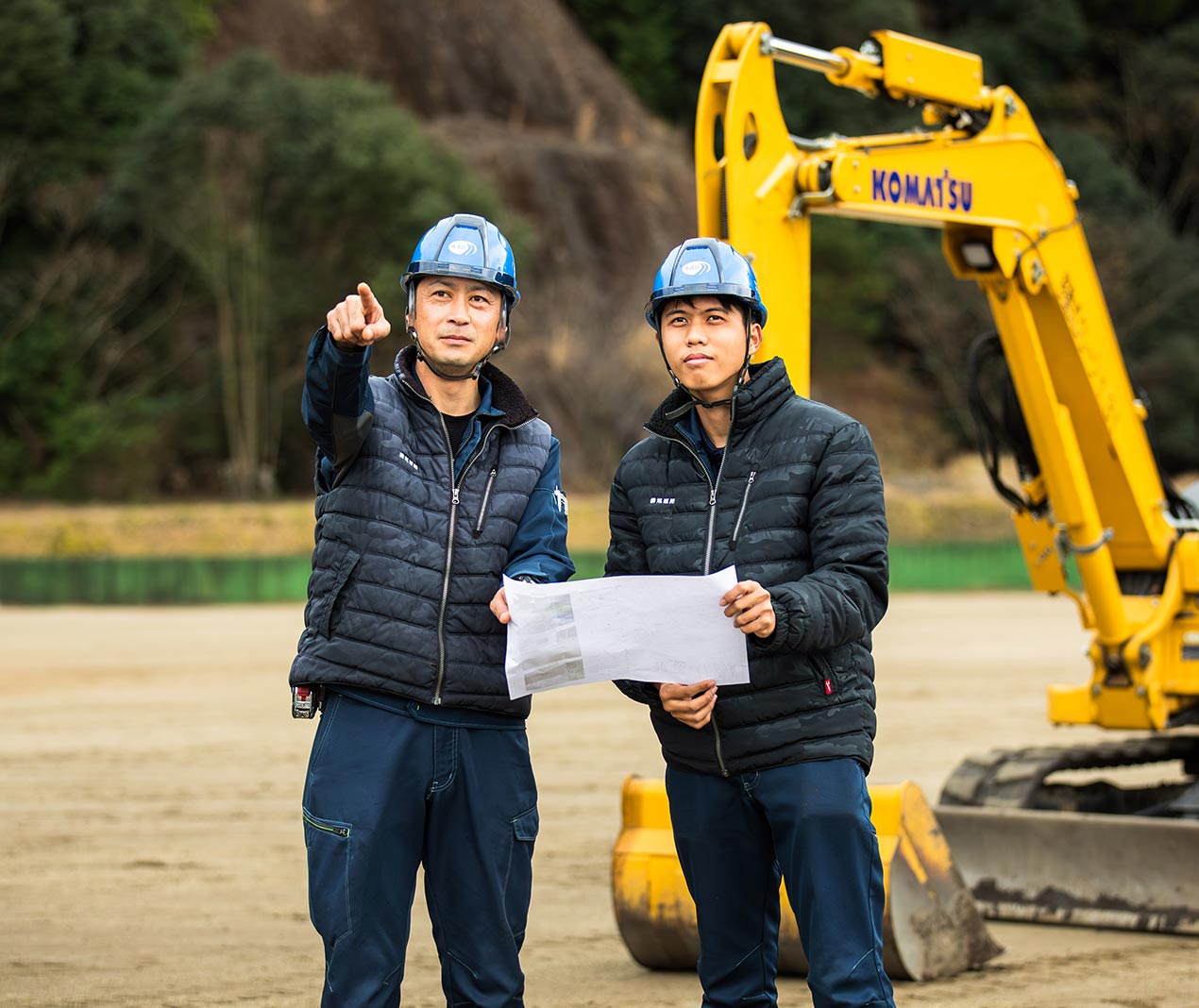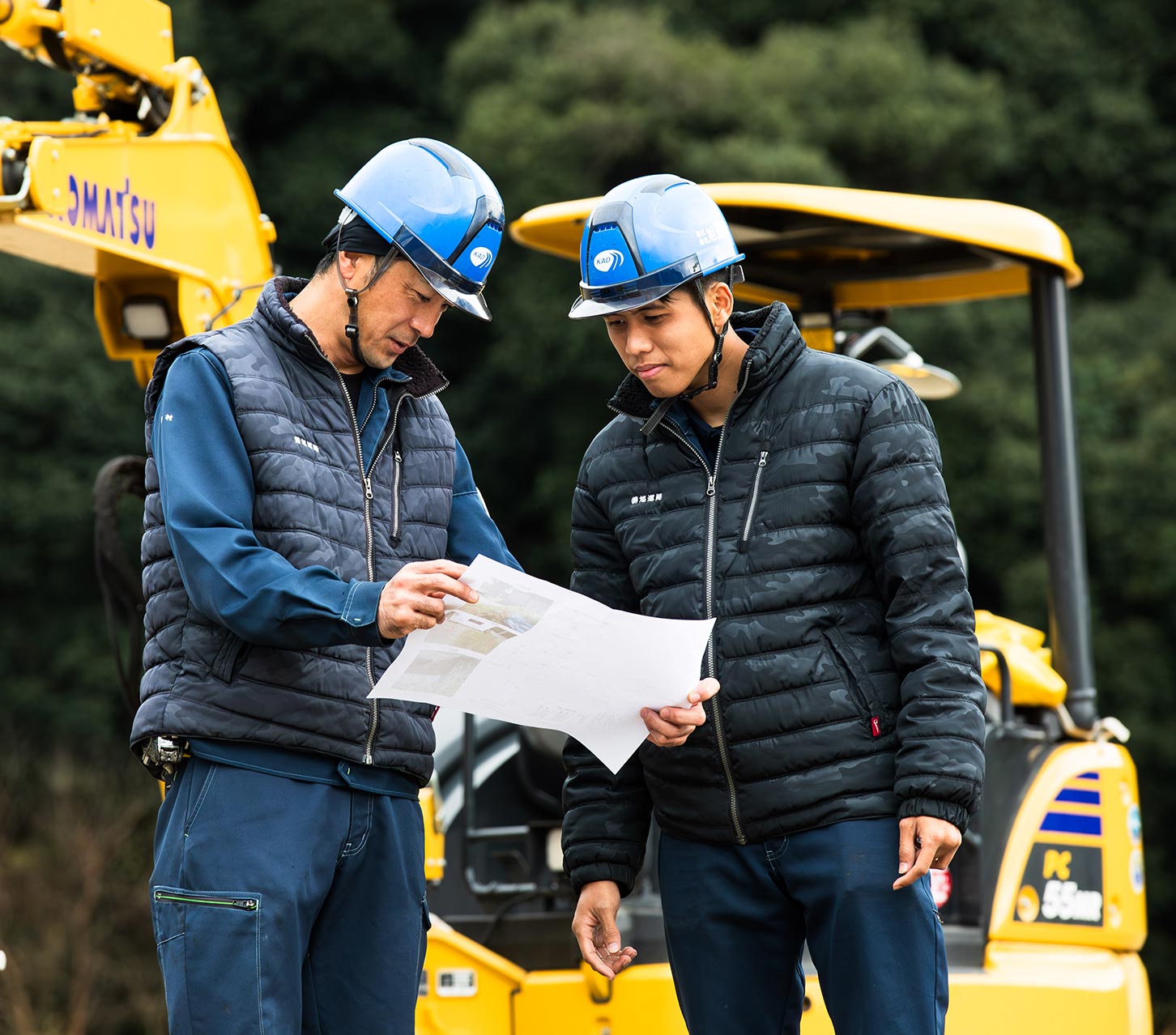 私たちが手掛けた道路やインフラは、宮崎で暮らす人々の生活に欠かせないものとして、長く残り続けます。地域社会から必要とされるという大きなやりがいを、きっとあなたも感じるでしょう。また、当社ではチームワークを大切にし、全員で一つのものを創り上げ、完成という大きな達成感を分かち合えるのも魅力です。