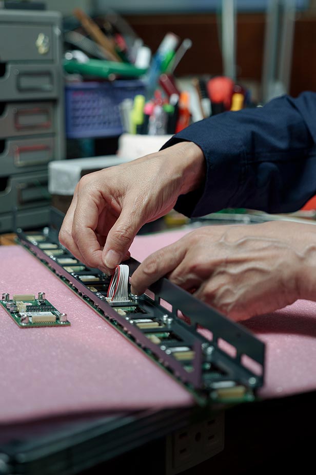 重要機器を設計山友工業株式会社は、全国の電力会社向けに装置を製作し、電気というライフラインを支えています。設計するのは「系統盤」「表示制御装置」「操作卓」などの電気の安定供給に欠かせない重要機器です。製品の品質が、そのまま社会の安心につながるため、妥協のないモノづくりに打ち込めます。華やかではないかもしれませんが、確かな技術で支える“なくてはならない存在”として社会に貢献できる仕事です。