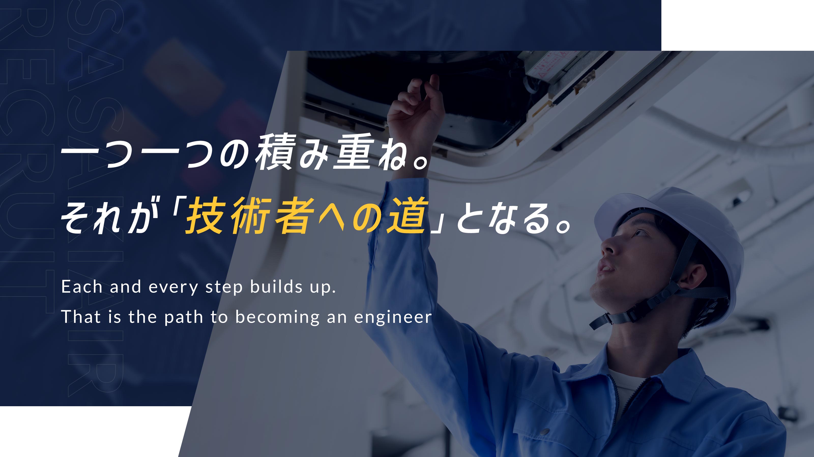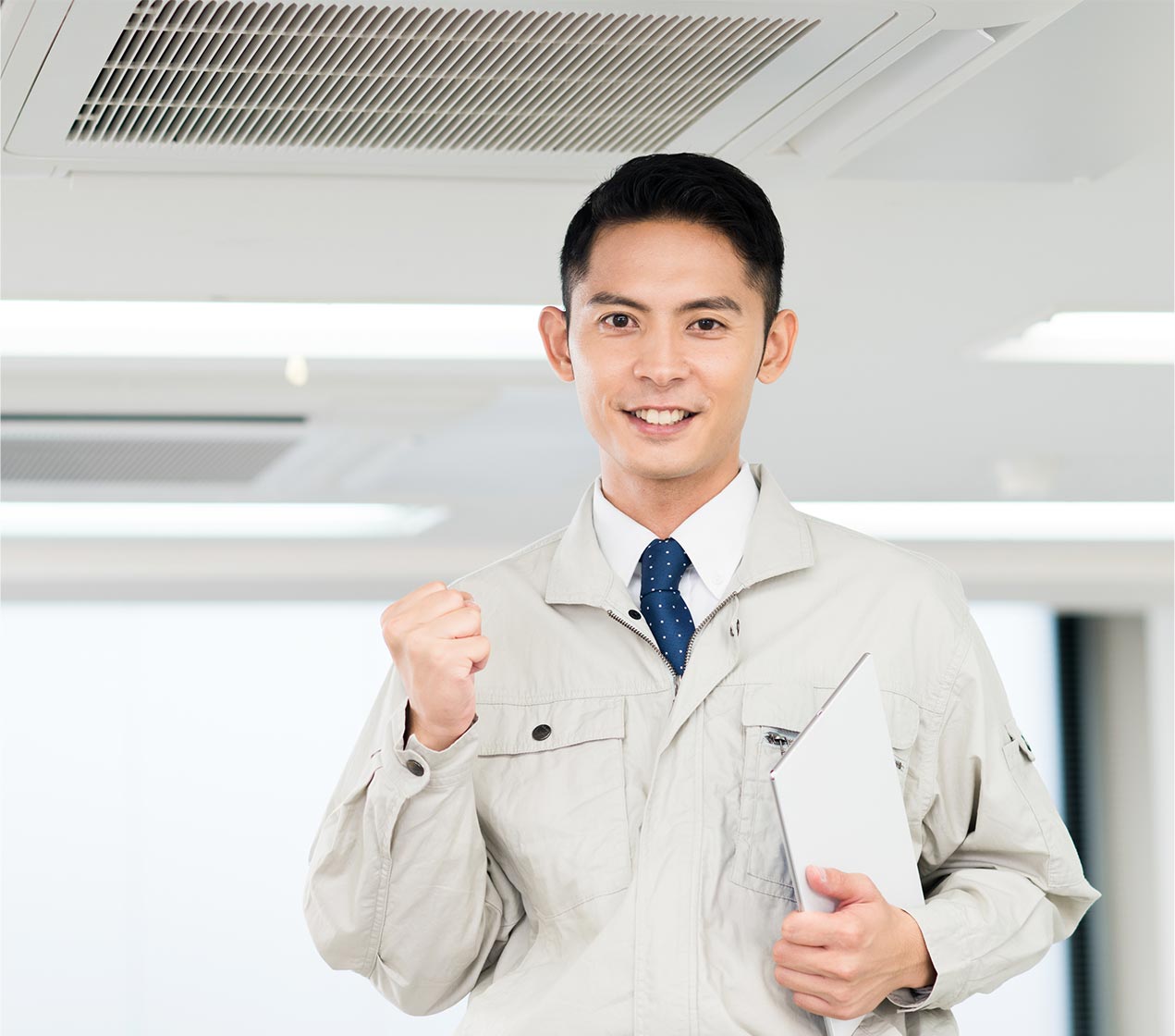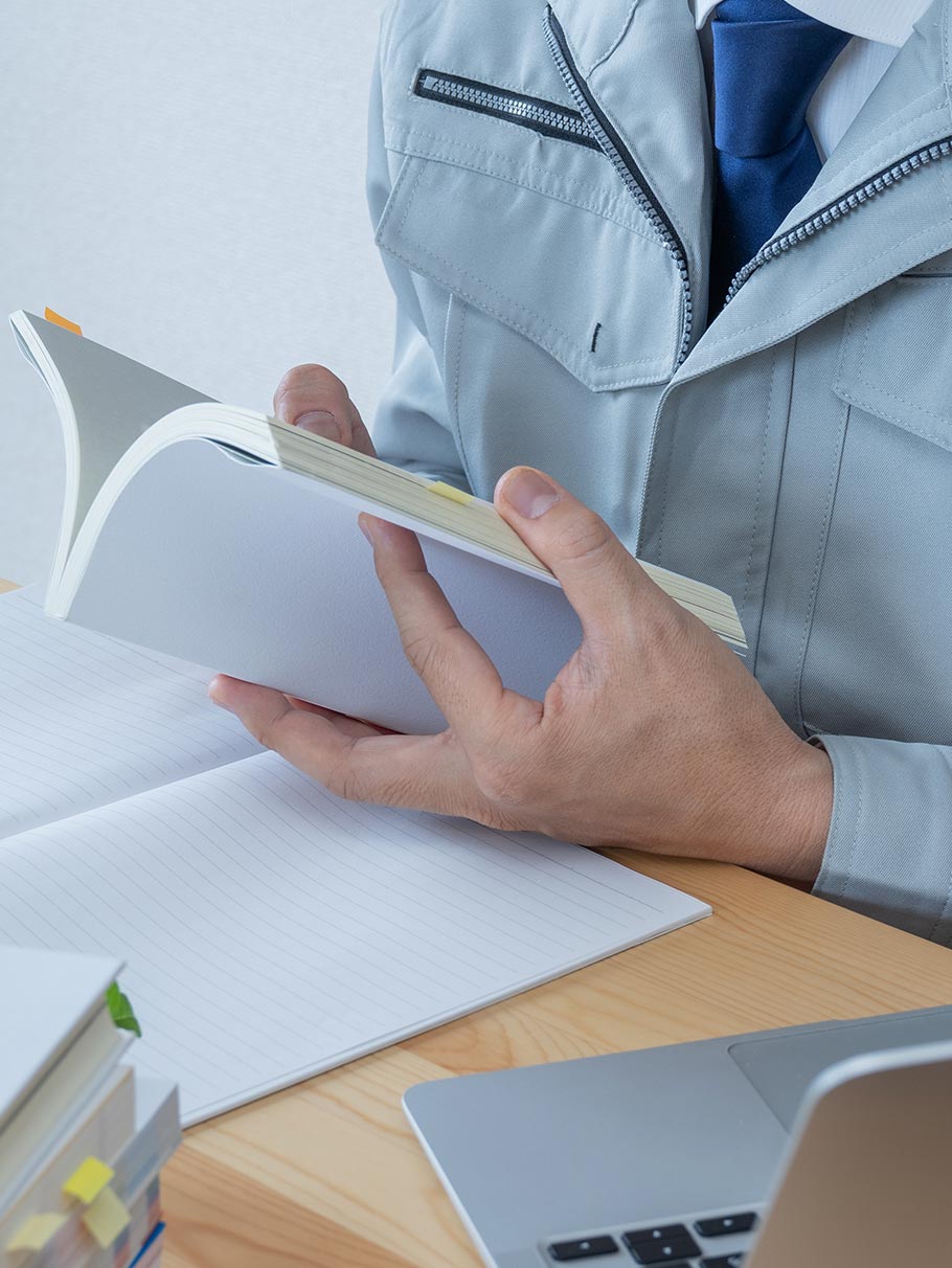 職人技を手に入れる。資格取得に必要な費用は、すべて当社が全額負担します。初めは「高所作業・ガス溶接」など短期講習からスタートし、徐々にステップアップすることも可能です。対象資格は、「第二種電気工事士」「冷凍空調技士」「施工管理技士」「高所作業車」などさまざま。資格取得後には、1級で2万円、2級で1万円など祝い金もご用意。資格を取得すれば、一生モノの財産となり、あなたのキャリアアップを、当社は全力で応援します。