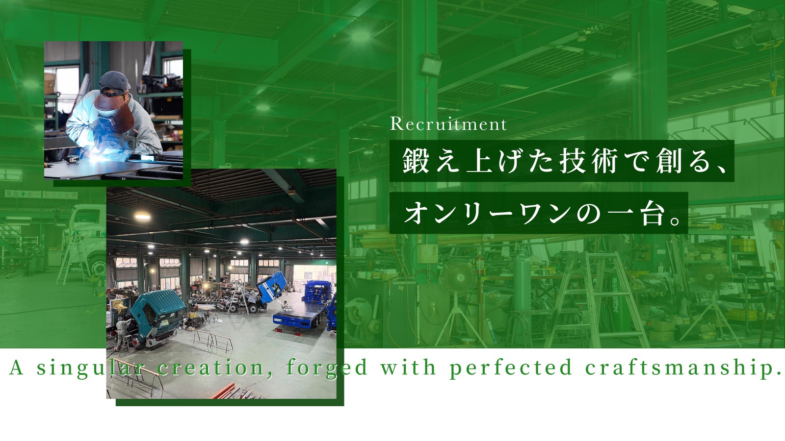 当社は1965年に創業した、トラックボディーの製造を専門とする企業です。扱う車両のほとんどは、一品一様のオーダーメイド。お客様のご要望に応える“クルマ創り”を使命に、1台1台と真摯に向き合ってきました。