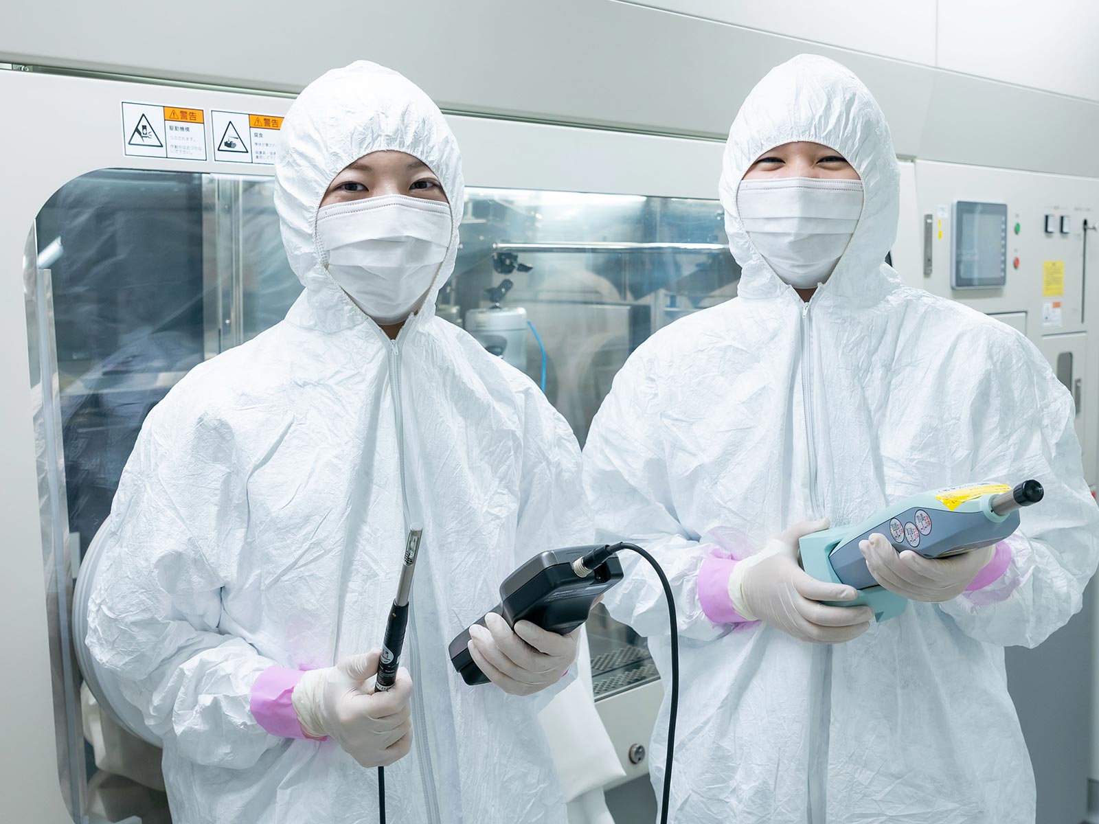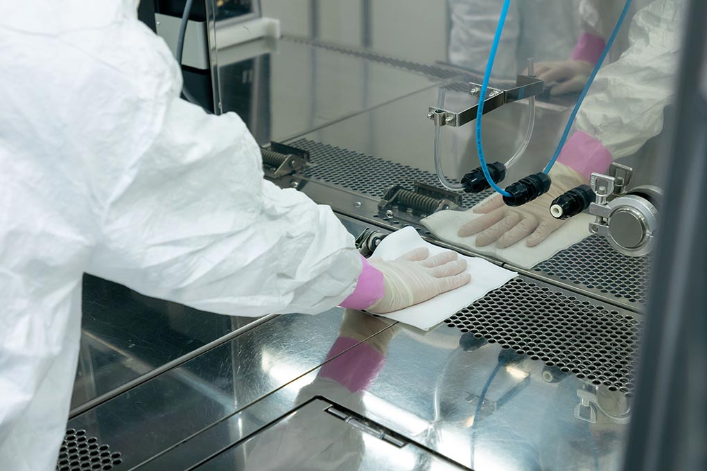 iPS細胞(人工多能性幹細胞)の医療応用を支え、未来の医療を現実のものへ。それが私たちの揺るぎないミッション。日本各地の大学病院などを巡り、最先端医療の心臓部であるクリニカルグレード細胞を製造するクリーンルームの品質を保証。バリデーションやサニテーションといった専門技術で、現場の無菌化と環境評価を徹底します。