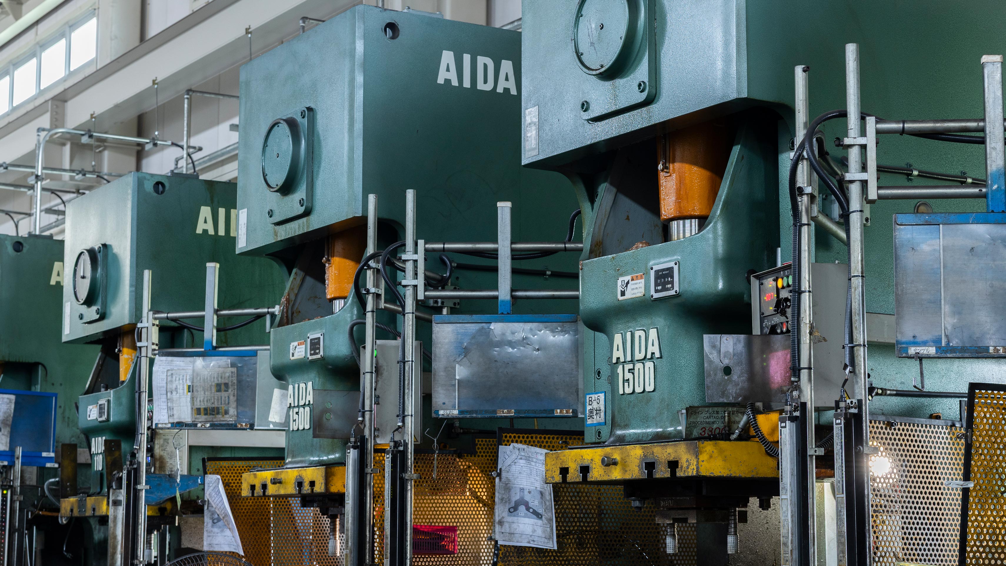 どの程度ですか?岩田工業は、最大300トンの大型プレス機から最小45トンまで、幅広いトン数に対応する計33台のプレス機を保有しています。順送型と単発型の両方に対応でき、製品サイズや形状、ロット数に合わせて最適なプレス機を選定できる体制です。