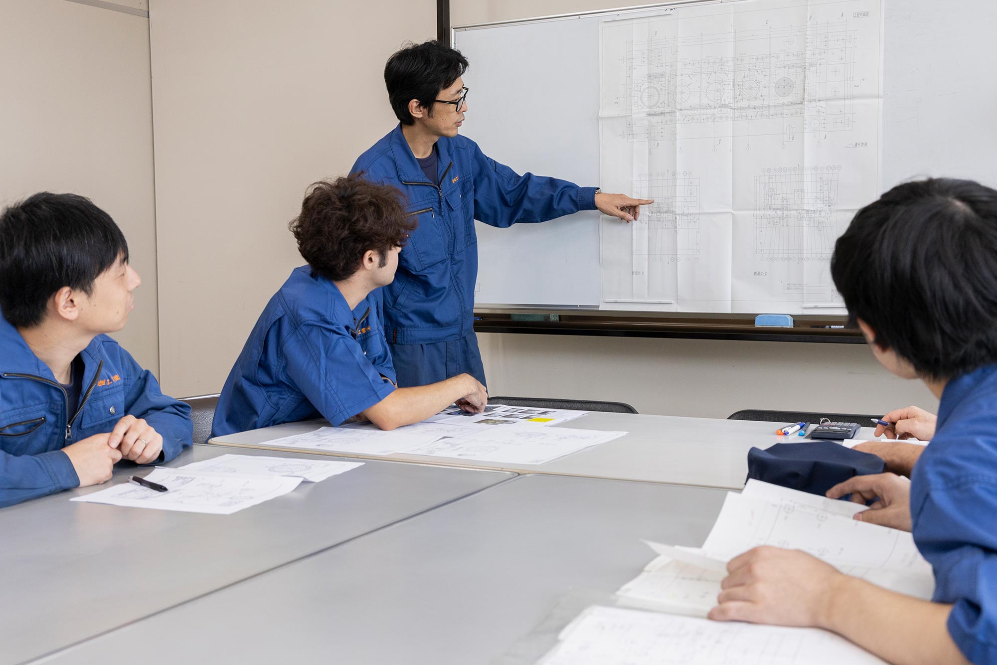 岩田工業では、社員一人ひとりの成長を重視した教育体制を整えています。設計職、製造職のそれぞれにおいて、OJT形式で段階的な育成を実施。実践を通して着実にスキルを身につけられる環境です。