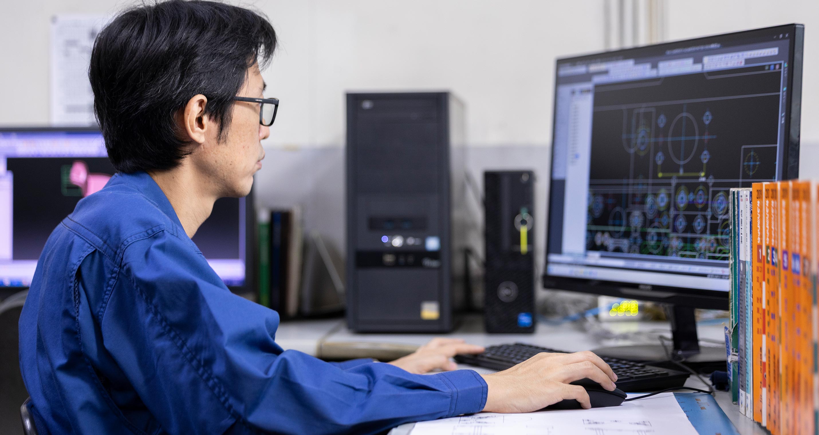 当社では、CAD/CAMを用いた金型・治具設計を社内で完結させることで、図面段階から迅速な立ち上げを実現。設計から試作、量産立ち上げまでを一貫して進めるため、工程間の調整を最小限に抑えることが可能です。これにより、お客様の急なご要望にも短納期で柔軟に対応し、工程変更にもスムーズに応じられる体制を整備しています。お客様のアイデアをスピーディーに形にし、市場投入までの時間の短縮に貢献する、それが私たちの内製設計の強みです。