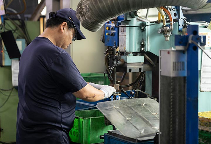お客様の製品に最適な加工ラインを構築するため、自社工場と協力会社の強みを最大限に活かしています。例えば、金属プレス加工や溶接加工といった主要工程は、自社で高品質に完結できる体制を整備。さらに、表面処理や組付けなどの後工程においては、長年の信頼関係を築いてきた協力会社と密接に連携しています。製品ごとの複雑な仕様に応じて最適なライン構成の設計は、社内外の工程を無理なくつなぎ、品質、コスト、スピードのすべてを高いレベルで両立。お客様のあらゆるニーズに応える、柔軟で効率的な生産体制がここにあります。