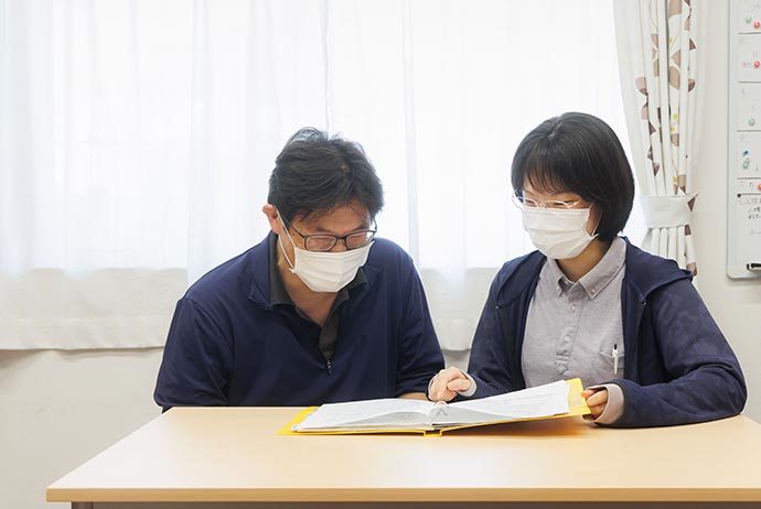 まずは先輩スタッフと一緒に訪問をスタートします。顔合わせから同行するので、不安を抱えることはありません。ひとり立ちに向けて、約半年かけて徐々にステップアップしていきましょう。OJT研修は、個々のレベルに合わせて柔軟に進めます。毎回フィードバックを受けられるのが成長しやすいポイントです。