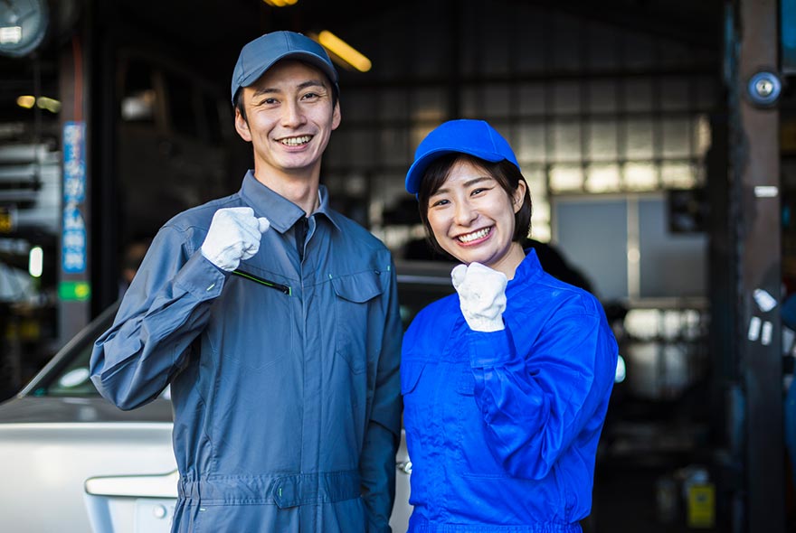 スキルが身につく入社後は先輩社員のサポートのもと、実務を通じて段階的にスキルを習得していただきます。お客様は法人が中心のため、接客に時間を取られることなく整備業務に集中できる環境です。