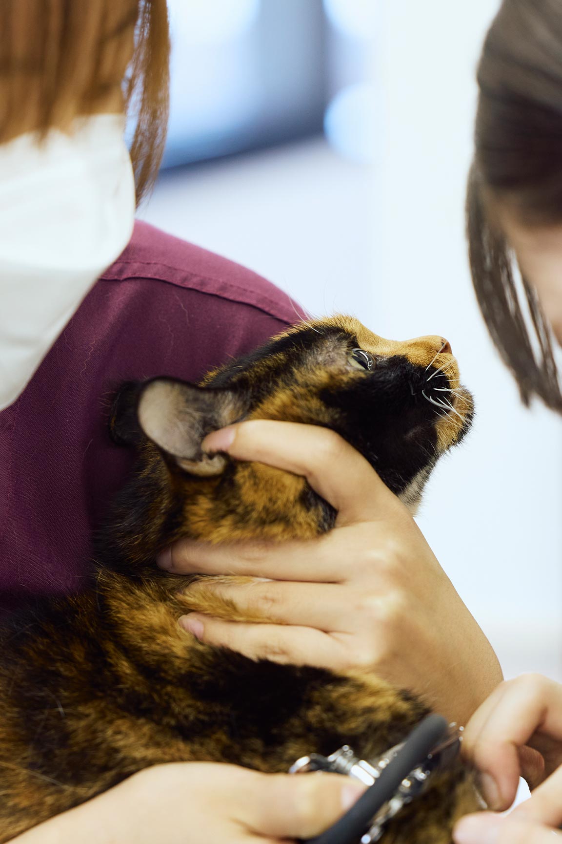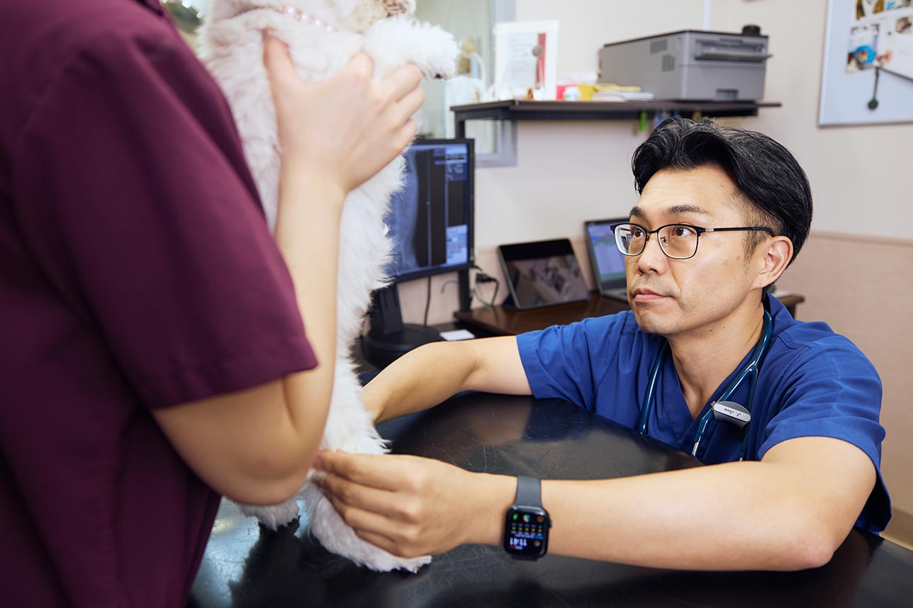 当院では身体検査や問診を重視し、必要に応じて臨床検査をおこないます。負担を極力減らすことで、動物と人に寄り添う医療の実現を目指し続けています。 -