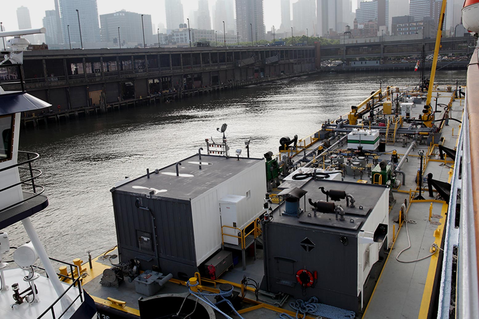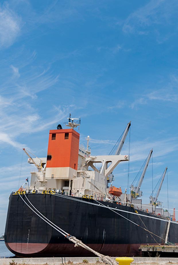 海に停泊する当社の配給船を、遠景から撮影しています。