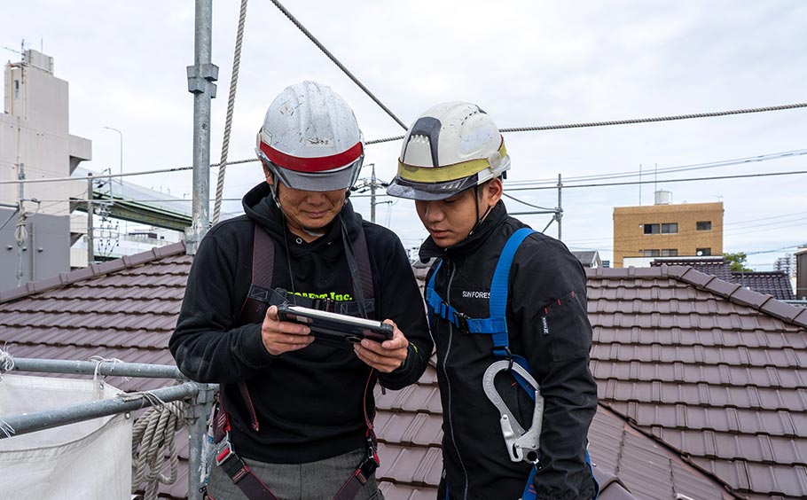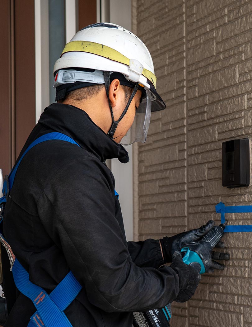 当社の仕事は、戸建てからマンションまで多様な建物のリフォームに携わるため、日々新しい学びにあふれています。外壁や屋根の補修、バルコニーの防水工事に加え、テラスやカーポートの設置、浴室のシーリング作業など、業務は幅広く、同じ現場は一つとしてありません。