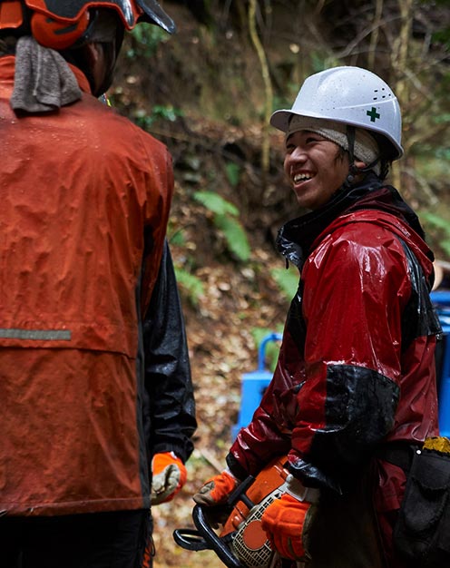 また「緑の雇用」制度を活用した外部研修や、林業技能競技会への参加機会もご用意しています。若手をはじめ、すべてのスタッフが学びながら成長できる職場です。実践的な育成方針のもと、着実なスキル習得を目指しましょう。