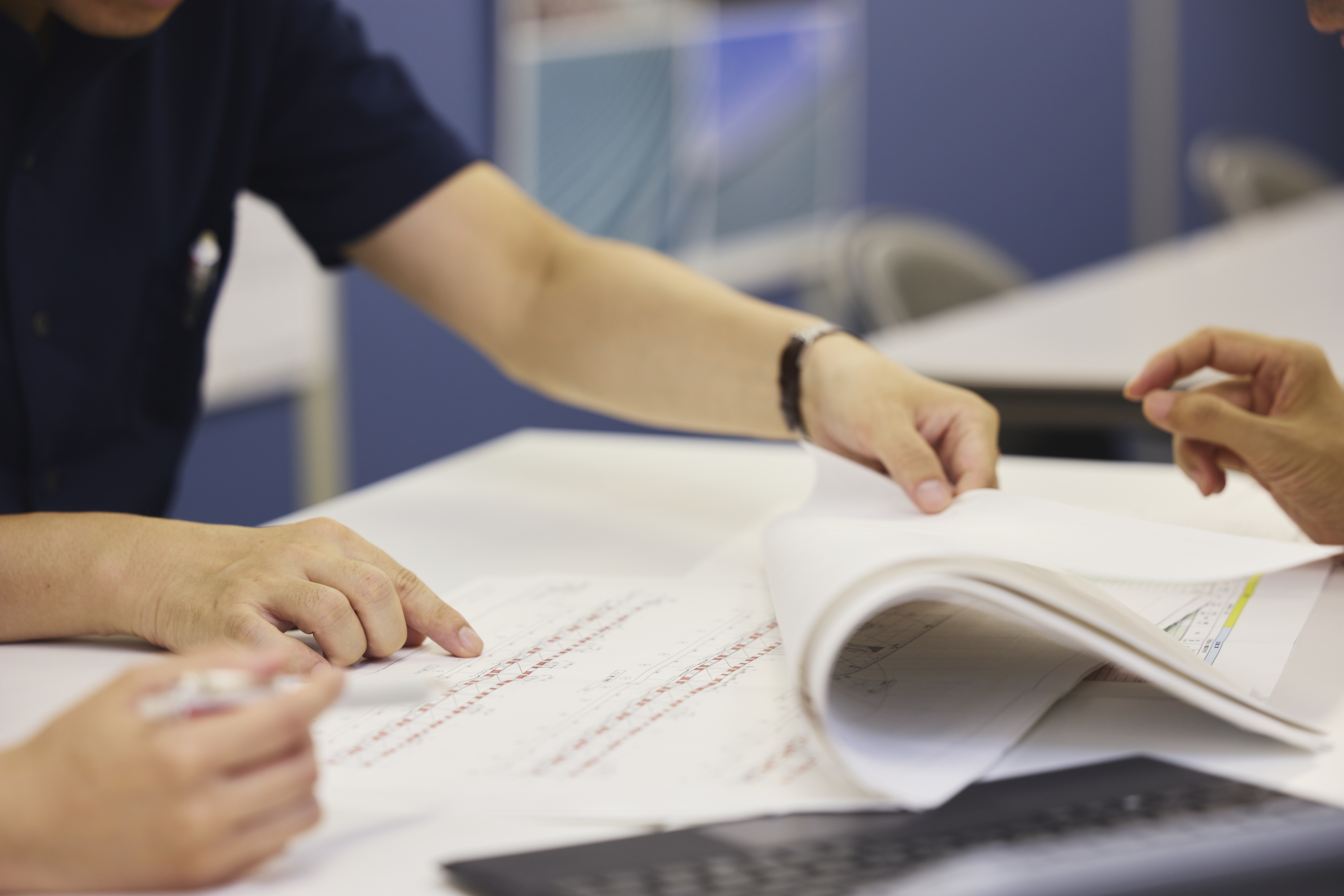 官公庁の庁舎や大学施設・病院や文化施設などの設計を担っていただきます。多くの人々が長く利用する建築を担当するやりがいを、きっとすぐに実感できるはずです。空間・美観・機能・環境を考慮した意匠設計や、安全性を支える構造設計。法律制、コストバランス、クライアントの要望など、多角的な観点からまとめていきましょう。