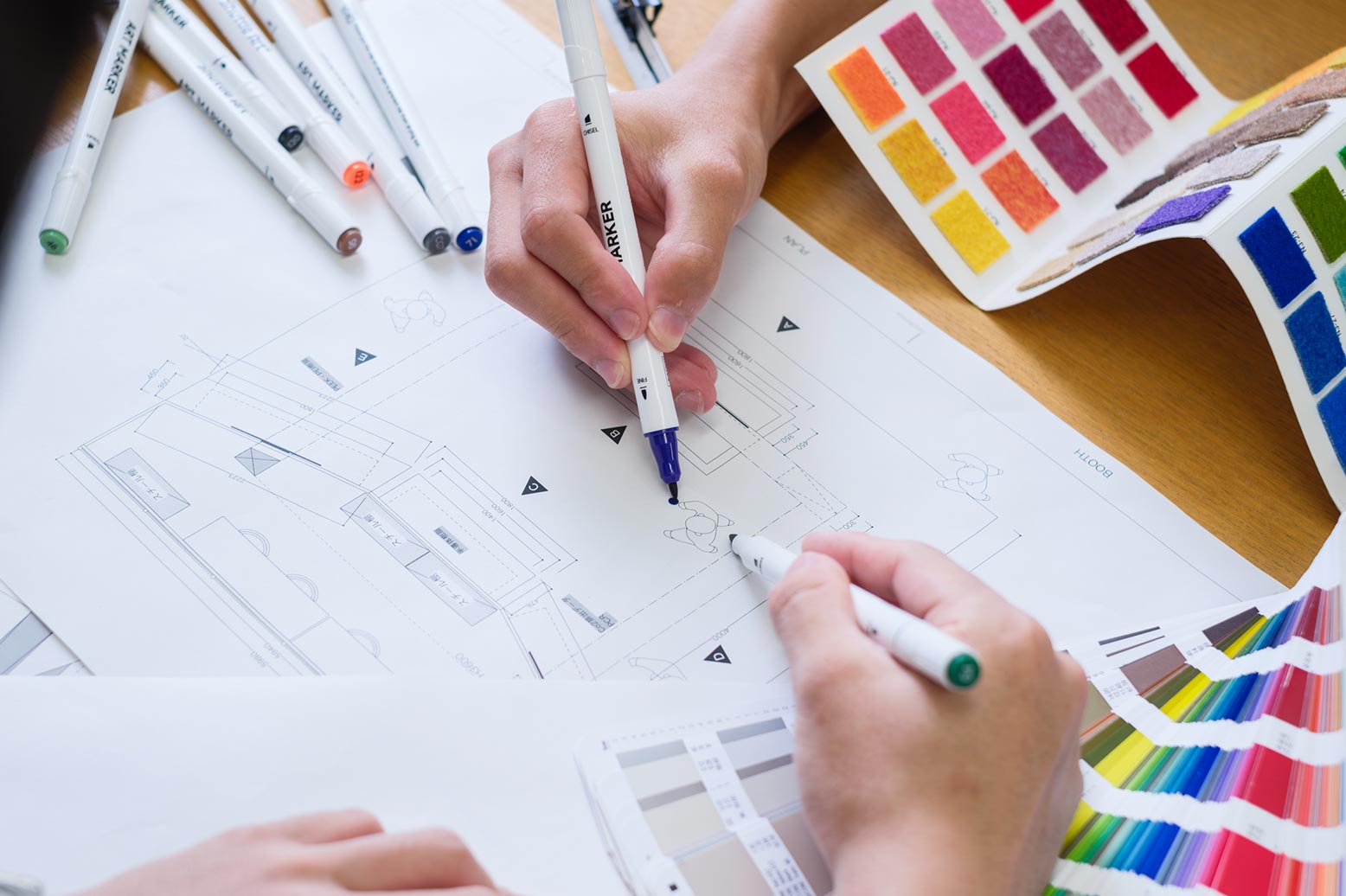 当社の空間デザイナーは、単なるデザイン業務にとどまりません。お客様との打ち合わせをはじめ、企画・設計、現場の管理まで一貫して手がけます。営業専任のスタッフを置かない体制だからこそ、デザイナーが直接お客様から想いや理想を引き出し、汲み取りながら最適な提案をしていきます。関係者との連携や現場での判断が求められる場面も多く、業務の幅は広いですが、それだけに「自分の手で空間をかたちにする」達成感は格別。今まで積み重ねてきた信頼から指名での依頼も多く、責任感をもって取り組むことで生まれる大きなやりがいが、自身の成長にもつながります。