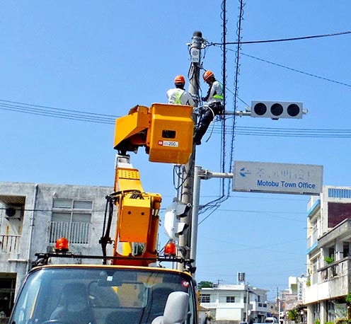 信号機工事に特化し、沖縄県警との直接取引は40年以上。信頼と実績のある安定企業です。県内においてこの分野に特化している企業は、そう多くはありません。新設・改良・移設はもちろん、設計や保守までを一貫して手がけているのが当社の強みです。