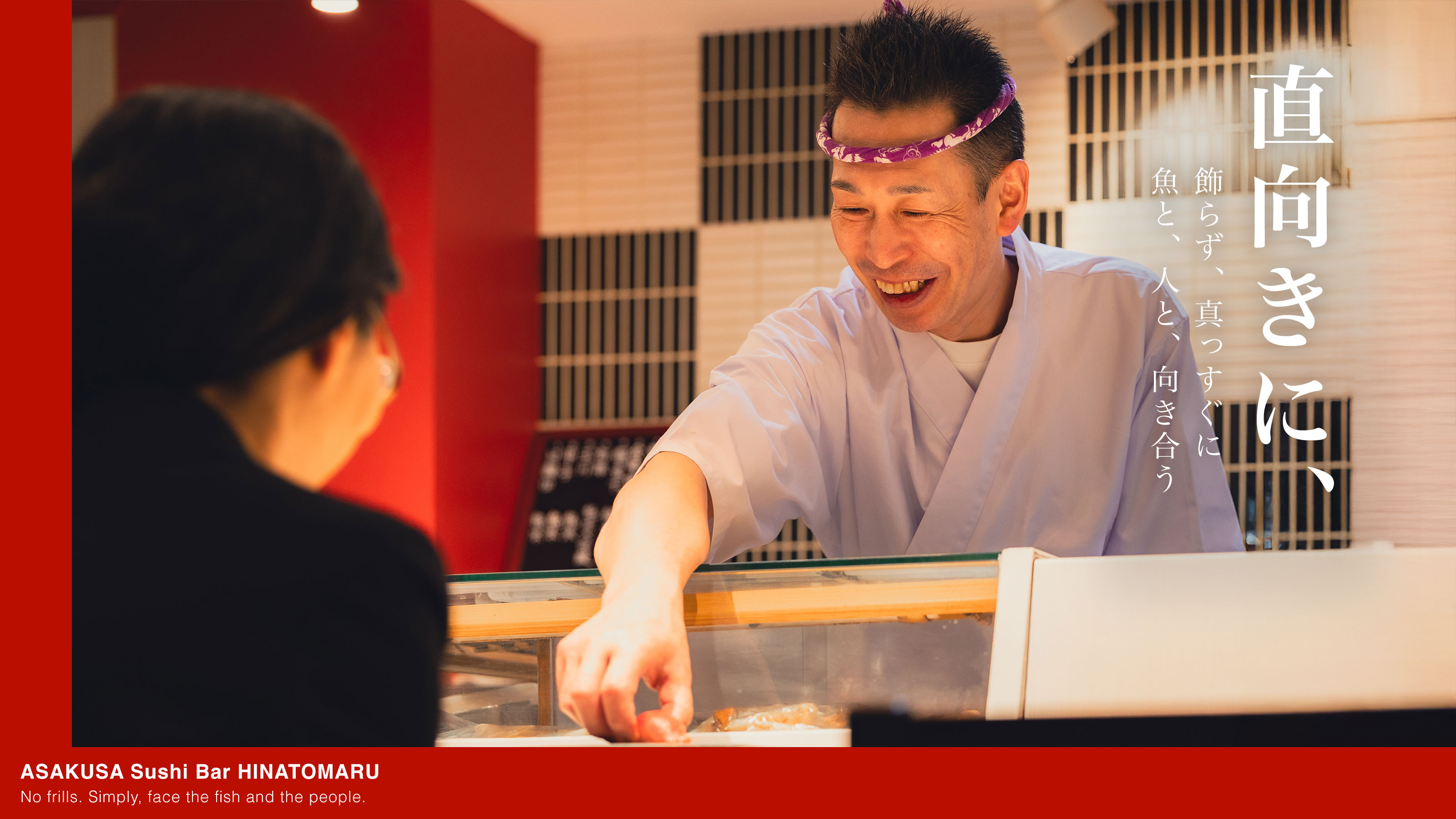 創業前は父が仲買人だった頃から身近にあった、活気あふれる市場。そこには、日本が世界に誇る最高品質の魚が集ります。この素晴らしく輝く活きの味を、そのまま真っすぐに届けたい。そんな想いから、私たちは「浅草寿司場ひなと丸」を江戸の心が息づく浅草で始めました。