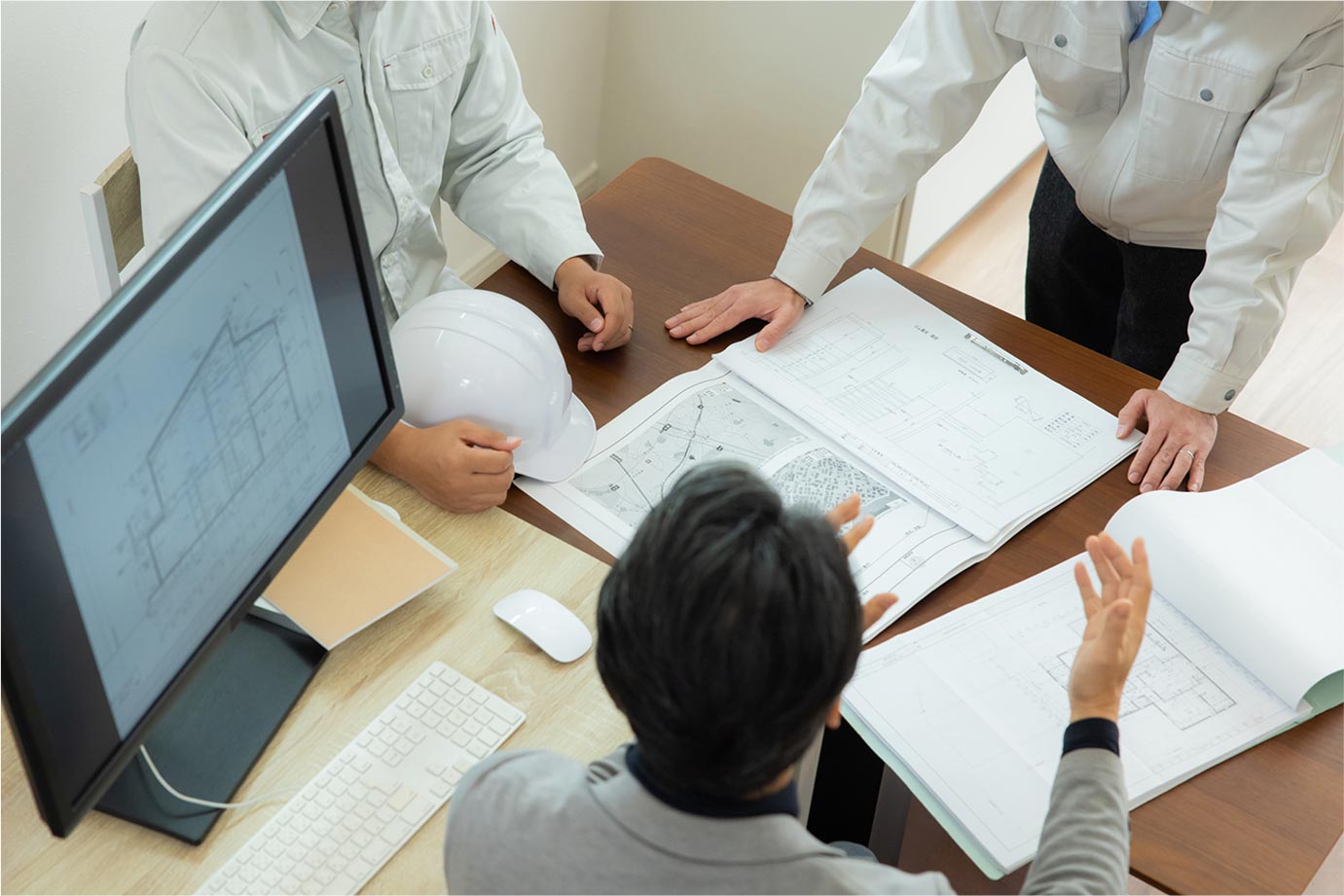 設備設計事務所の仕事は、何よりもお客様の声を伺うことから始まります。お客様と建設会社の間に立ち、ご要望を正確に汲み取りながらプロジェクトを前へ進めて行くことが私たちの役割です。お客様の理想とメーカーの製品をつなぎ、完成イメージと建設会社の技術を融合することで快適な生活空間を実現します。「人からモノへ、モノから人へ」と想いを届けてまいります。
