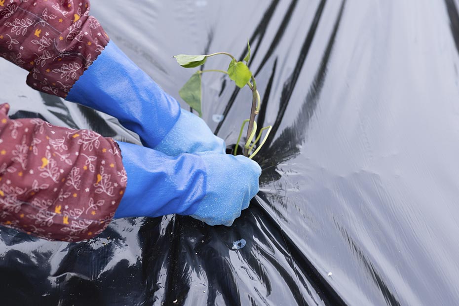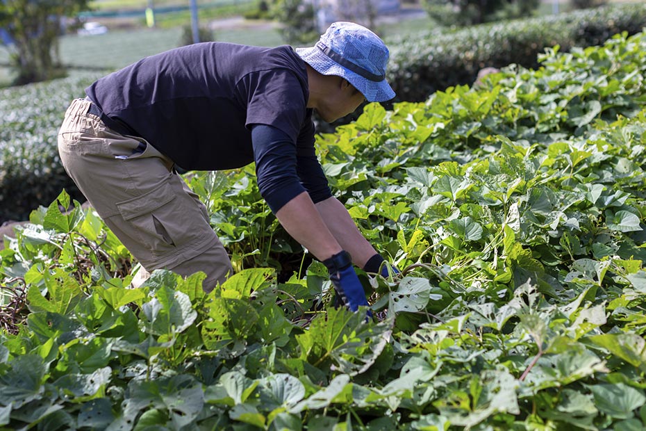 4~6月はさつま芋の苗切りや、苗を軽トラックで作業場へ運搬し、10本ずつ束ねます。さらにさつま芋の植え付けも実施。