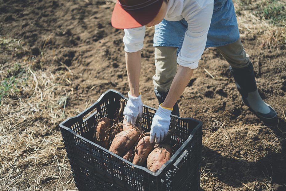 注文状況により稼働時期は変動しますが、9~11月中旬はさつま芋の収穫時期。収穫後は選別や出荷準備を丁寧に行います。