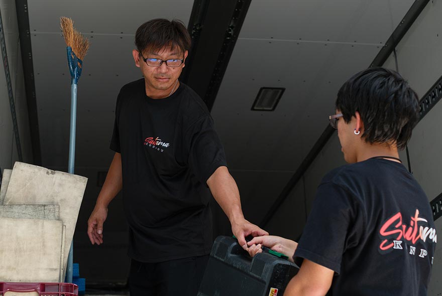 最高のチームから。現場ではチームプレーが基本です。10〜20人のチームで動くので、コミュニケーションが大切。私たちは、どんな状況でもケガなく、円滑に作業を進めることを最優先にしています。お互いに支え合い、チーム全員で一つの目標に向かって取り組む姿勢が求められます。全員で力を合わせ、最高のイベントを作り上げていきましょう。