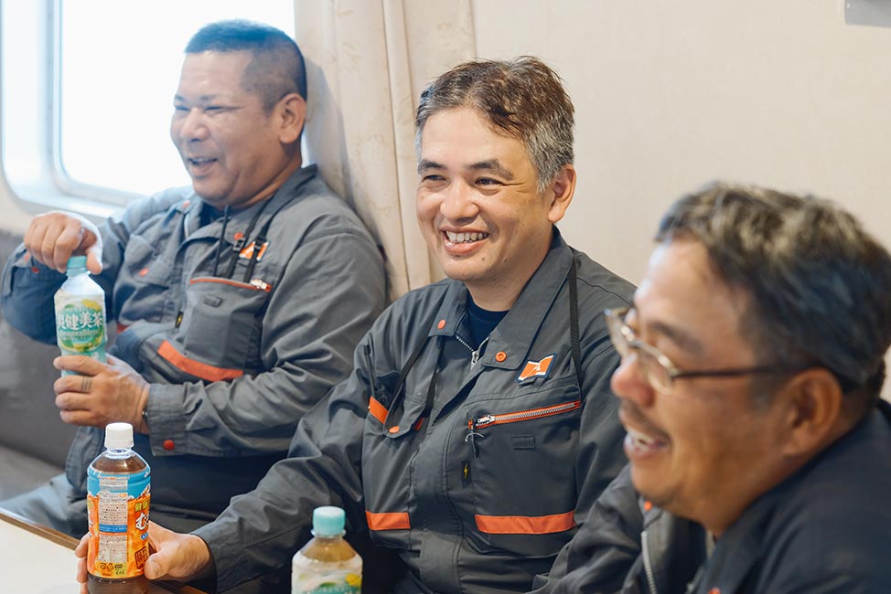 例えば、「65日乗船・26日休暇サイクル」「労務管理システムの導入」「基本給×2.5倍の賞与支給」など、乗組員一人ひとりが安心して長く働ける環境整備に力を入れています。乗船中のWi-Fi完備はもちろんのこと、私たちは乗組員の豊かな人生を支えるために、常に新しい働き方を取り入れてきました。