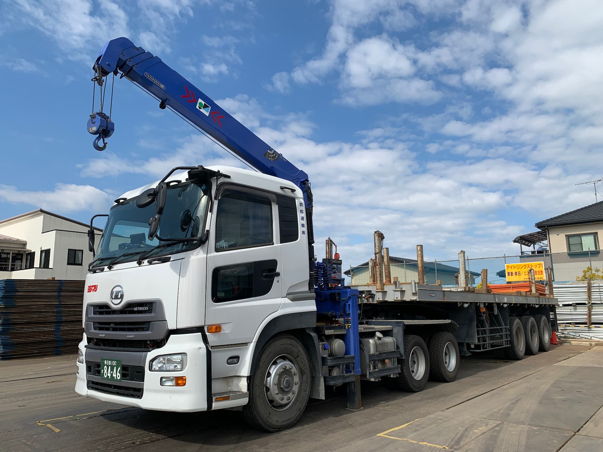 あなたにおまかせするのは、工場から現場への建設資機材の搬入や使用後の搬出、そして現場内での資機材移動です。入社後はまず2tパワーゲート車を使用する業務からスタートします。その後は個々の習熟度に合わせて4tや8t・15tのユニック車、さらにはユニック付平トレーラへとステップアップしていきましょう。
